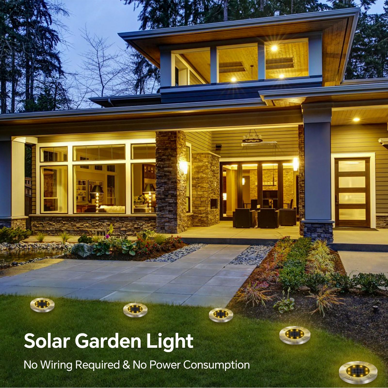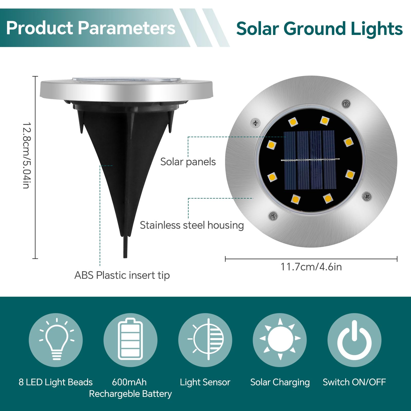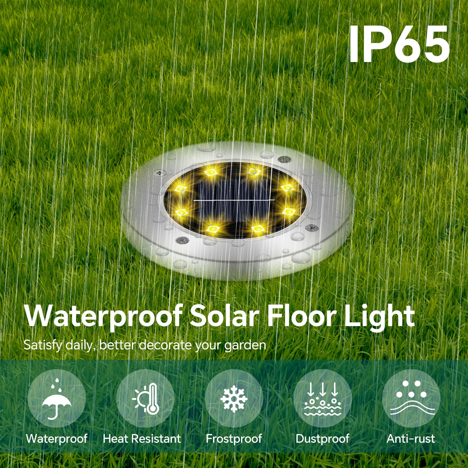 Caldarax 8 Stück Solar Bodenleuchten Aussen für Garten, 8 LEDs Solar Gartenleuchte IP65 Wasserdicht, LED Boden Solarleuchten Edelstahl für Garten Rasen Patio Gehweg Auffahrt(Warmweiss)