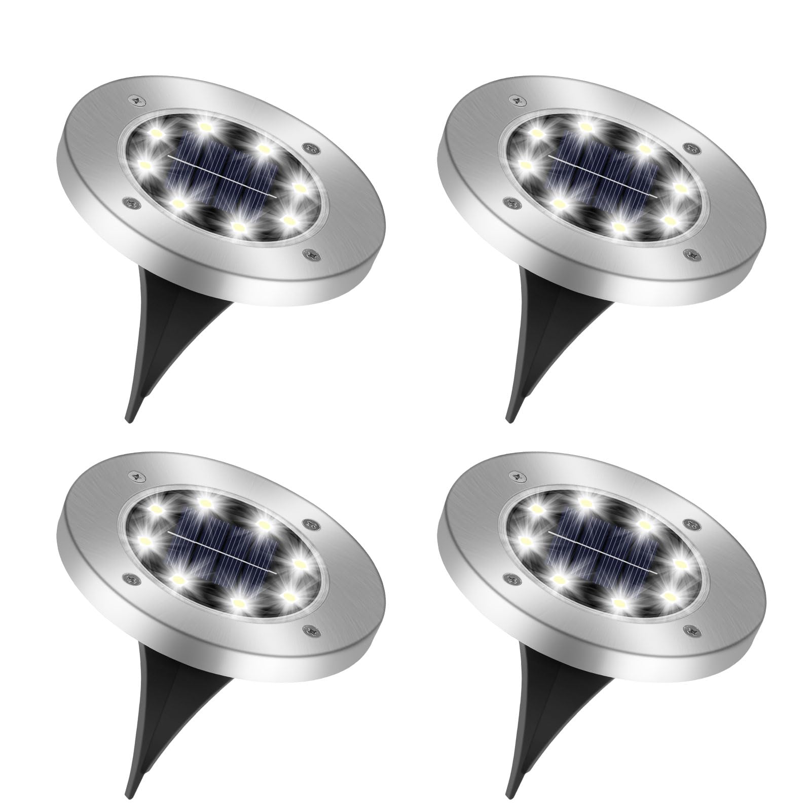 Caldarax 4 Stück Solar Bodenleuchten Aussen, 8 LEDs Solarlampen für Aussen Garten, IP65 Wasserdicht Solarleuchten, Kaltweiss Led Solar Gartenleuchten für Rasen, Gehweg, Auffahrt, Patio