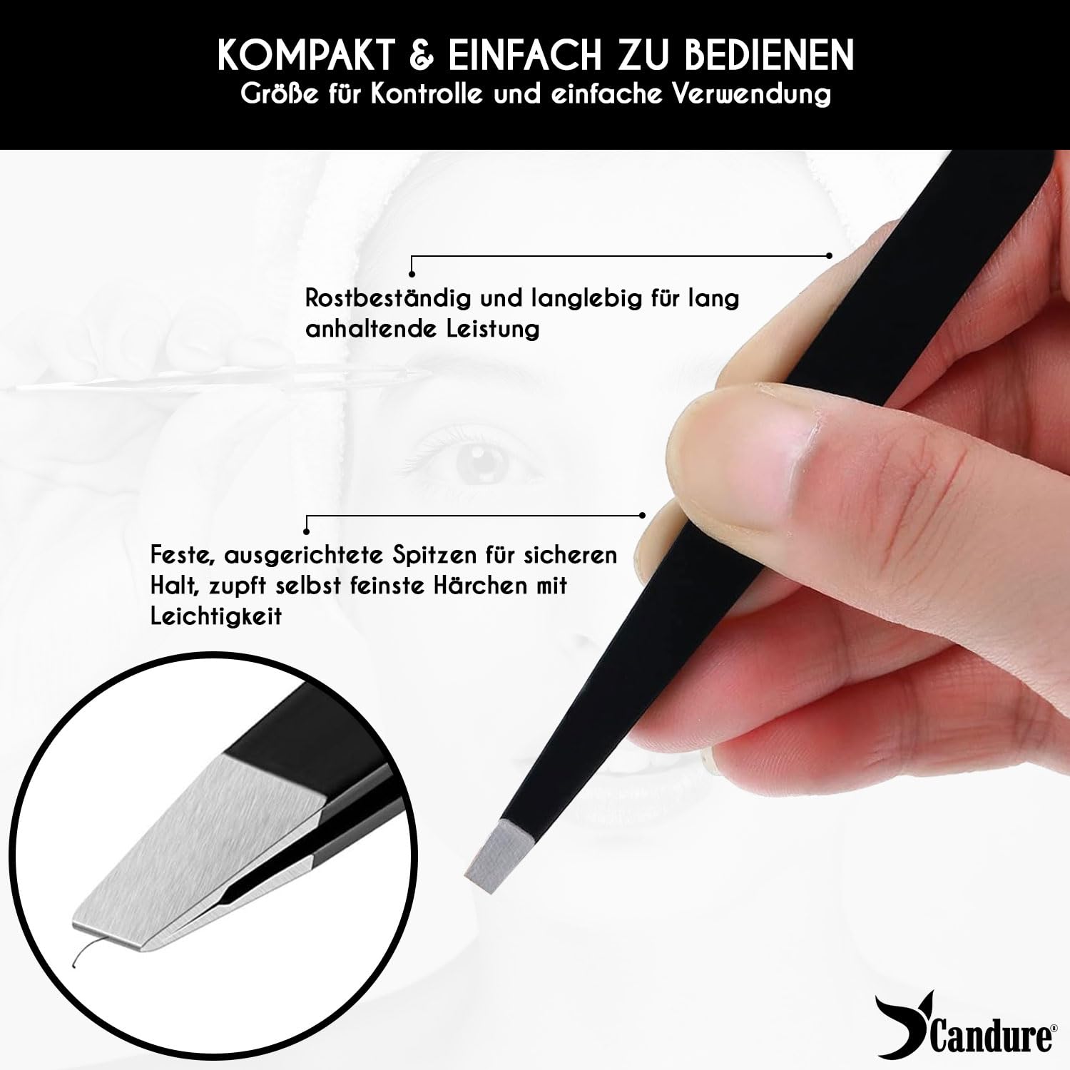 Mindestanzahl für die Bestellung von "Candure Eyebrow Tweezers Set for Professionals (5Piece) – Stainless Steel Precision Tweezers for Ingrown Hair, Facial Hair, Splinter and Blackhead Remover (Schwarz - 5 Stück)" ist 1.
