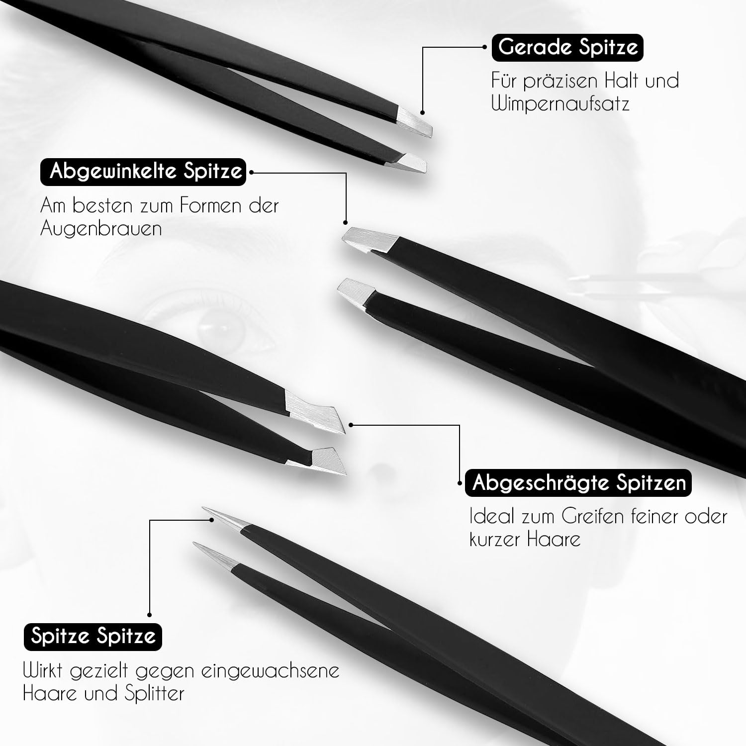 • Spitze Pinzette & spitze Pinzette für Detail Arbeit: Präzisionszange Set aus Edelstahl für Wimpern und andere Gesichtshaare. Sie nehmen die kleinsten Haare leicht auf, ohne sie zu lockern