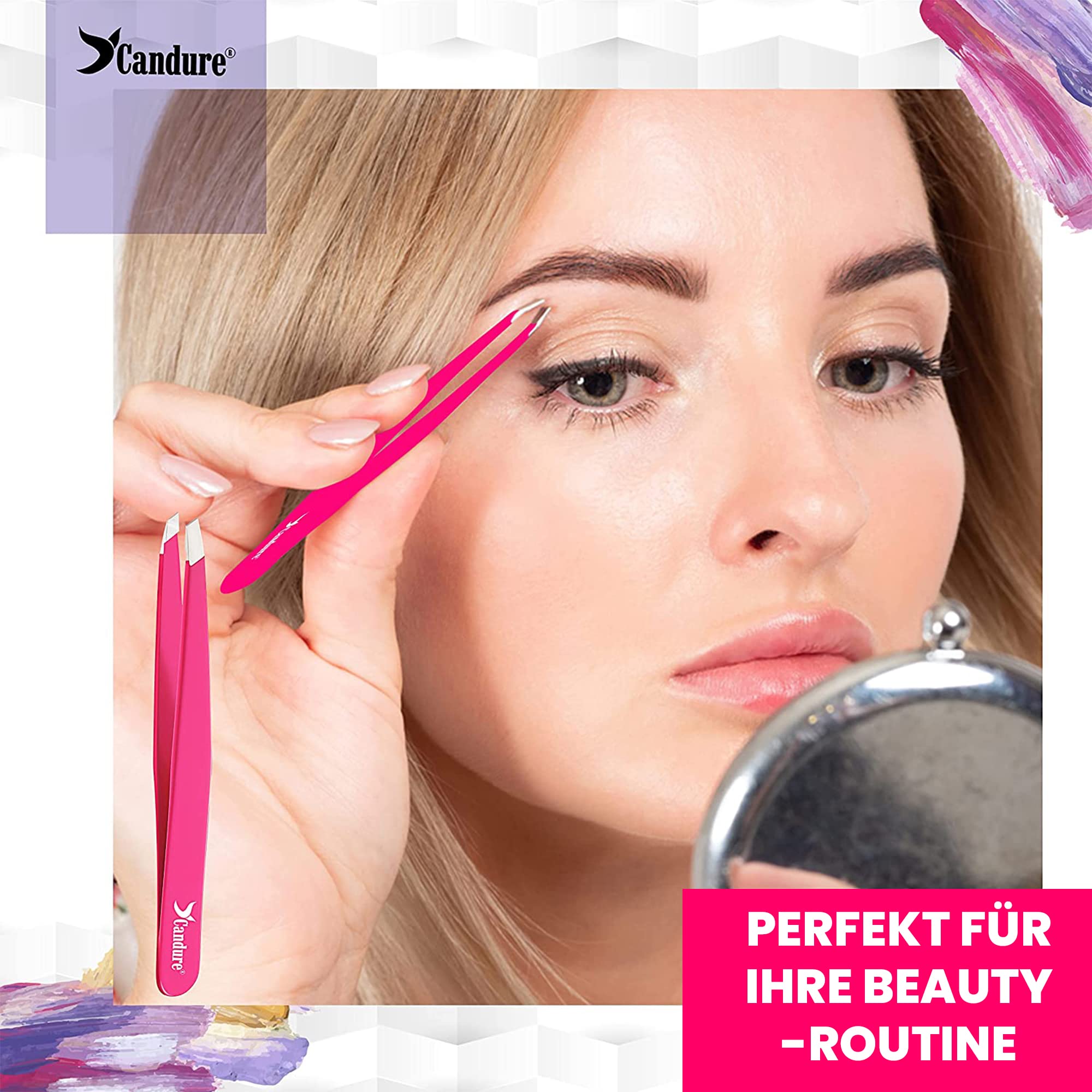 Candure Pinzette Augenbrauen Zupfen Pinzetten Profi Edelstahl Präzisionsspitze Pinzette Splitter Schräg zum Augenbrauen Zupfen Gesichts und Eingewachsene Geeignet für Herren & Damen Haare 1 Stück