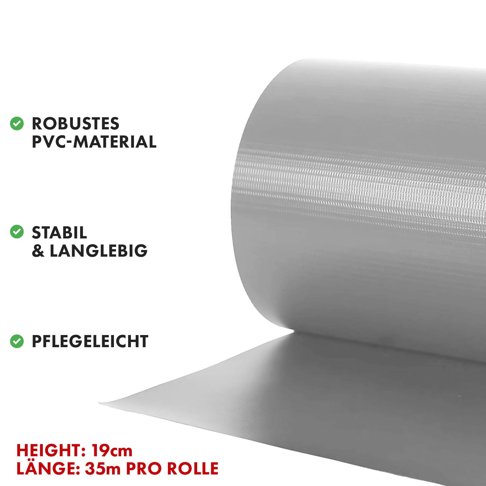 casa pura Sichtschutzstreifen PVC | Sichtschutzfolie Gartenzaun oder Balkon | inkl. 20 Befestigungsclips | für Einzel- und Doppelstabmatten geeignet | 19 cm x 35 m | einfarbig oder mit Motiv| Grau