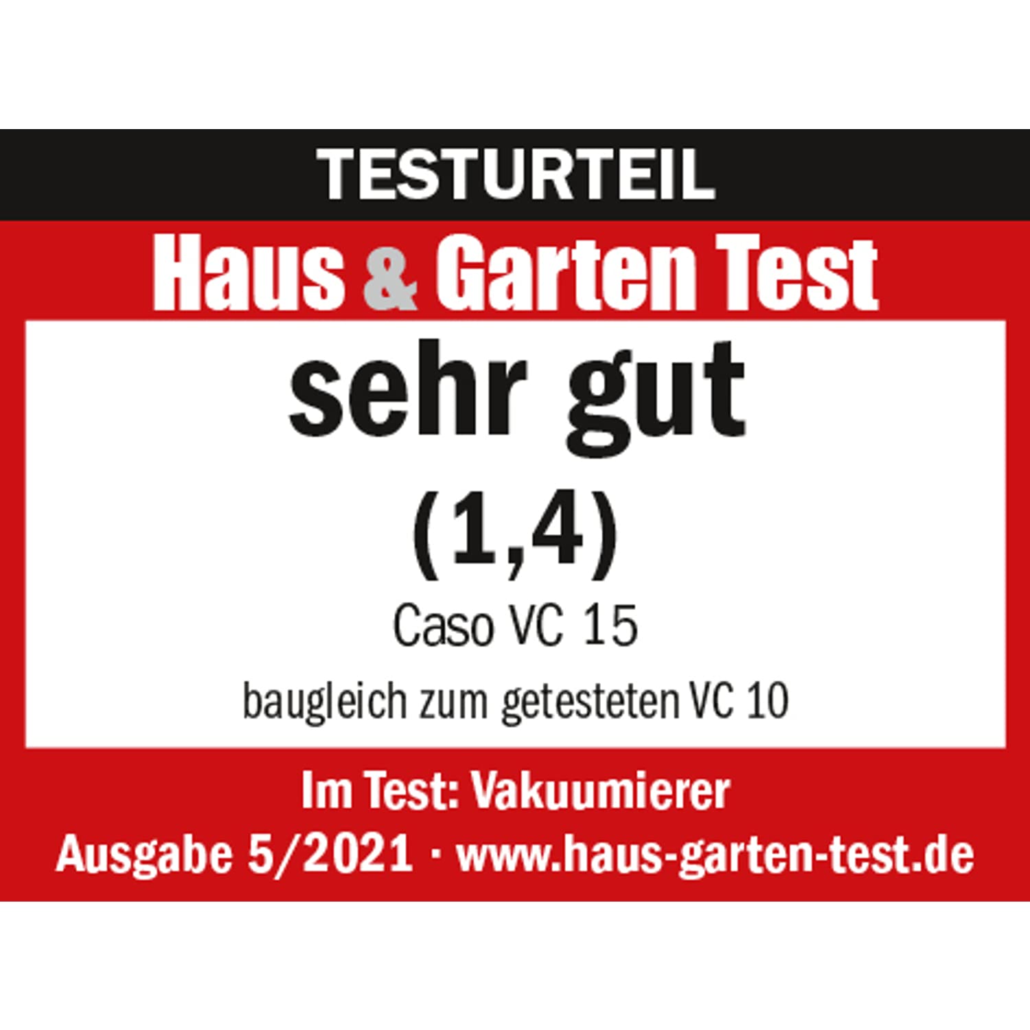 CASO VC15 Vakuumierer – Vakuumgerät, Testurteil Sehr Gut, Lebensmittel bleiben vakuumiert bis zu 8x länger frisch, separate Schweissfunktion, inkl. 10 gratis Profi- Folienbeutel