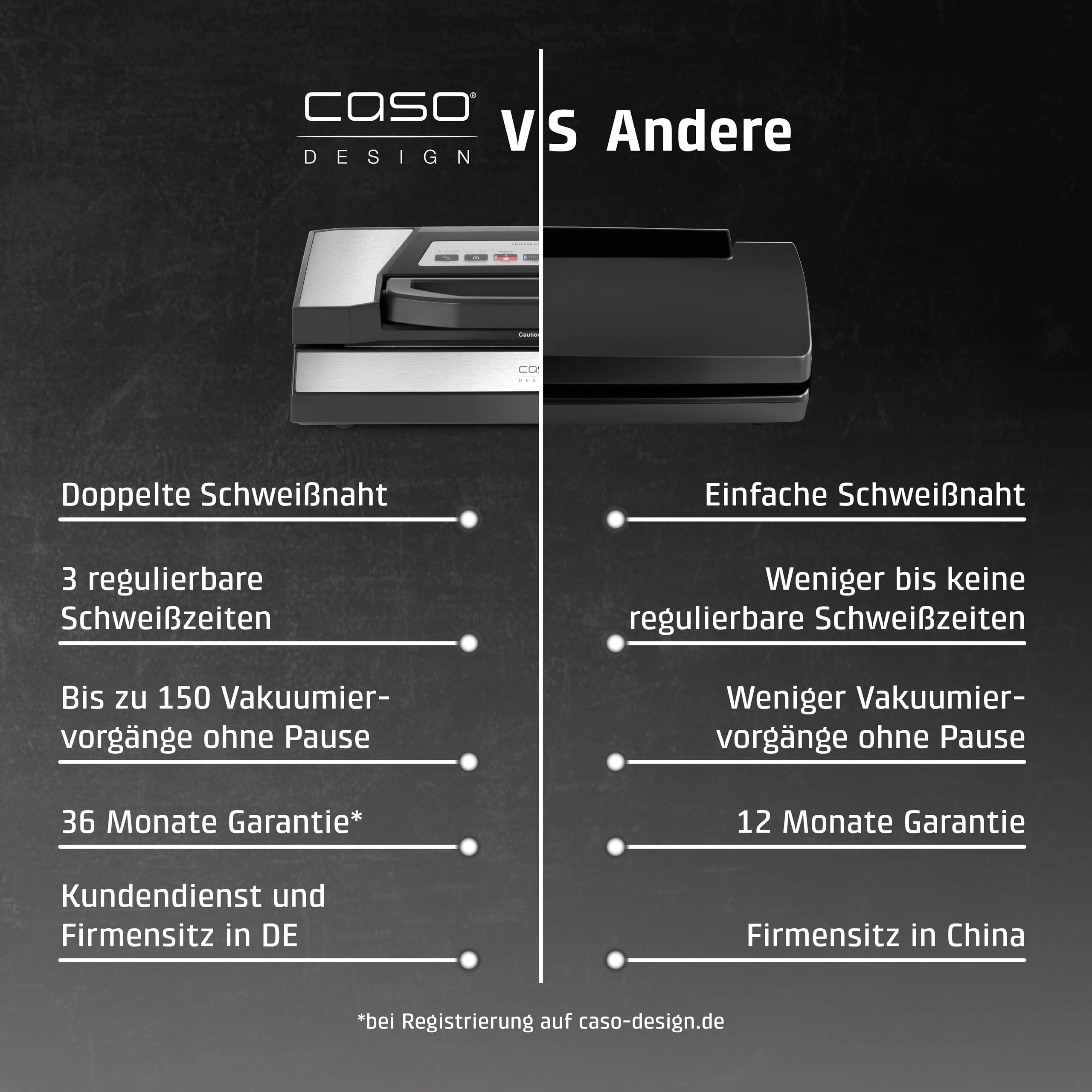 CASO VRH 690 advanced Vakuumierer Testsieger, Vakuumiergerät für Lebensmittel, 150 Vakuumiervorgänge nonstop, doppelte Schweissnaht, 20 Liter/Min, Cutter, inkl. 2 Profi- Folienrollen