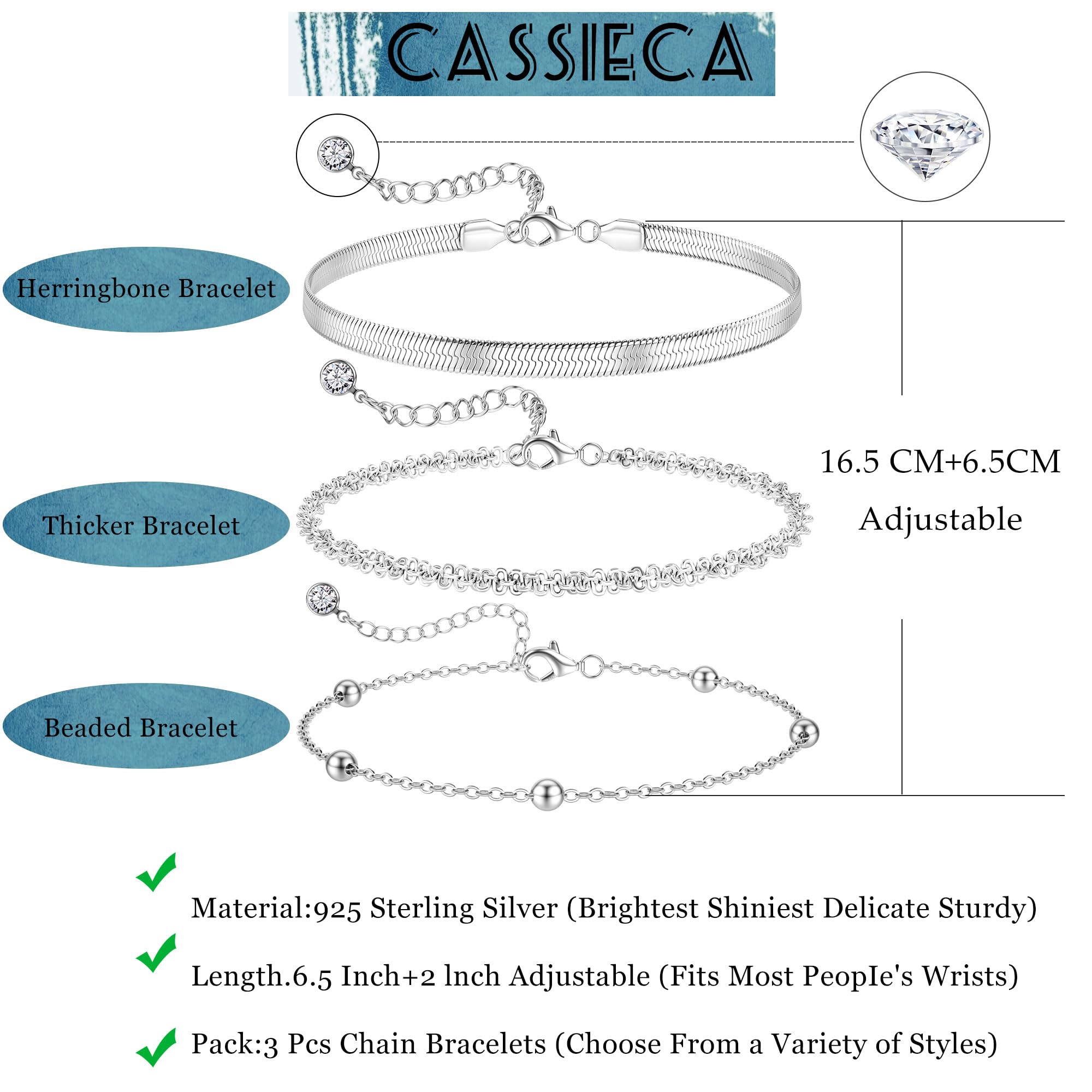 CASSIECA 3 Stück Armband Silber Damen Armbänder Silver Armband Set Gold 14 Karat Vergoldet Armbänder Damen Verstellbare Stapelbare Kettenarmband Gold Silber Schmuck für Damen