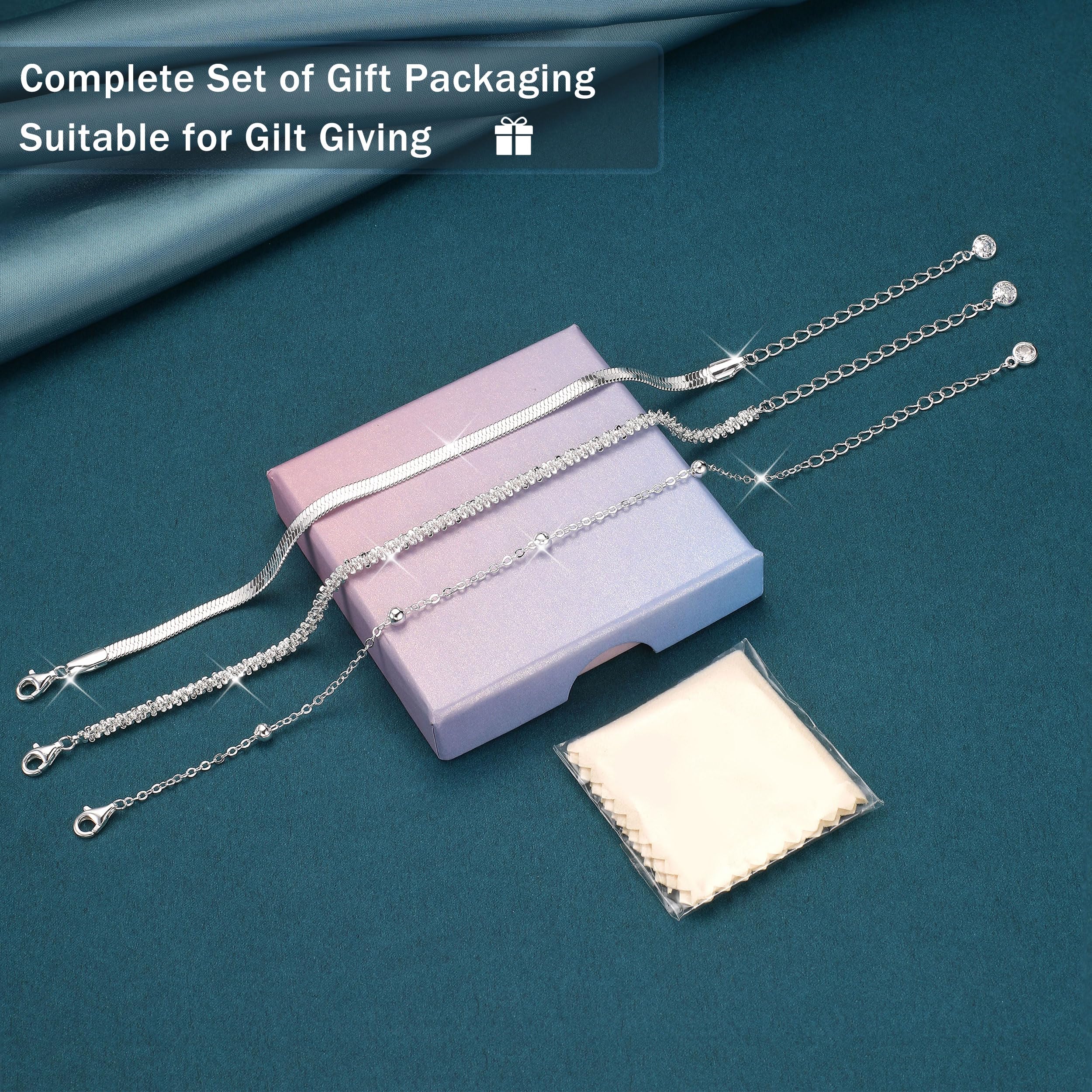 - 【ARMBAND DAMEN】: ????Diese zierlichen Silberarmbänder werden in einer süssen Geschenkbox geliefert und sind ein tolles Geschenk für Sie selbst oder jemanden, den Sie lieben. Sie eignen sich für jeden Anlass und eignen sich perfekt für Hochzeiten, Verlobungen, Jubiläen, Abschlussfeiern, Partys, Abschlussbälle und mehr.