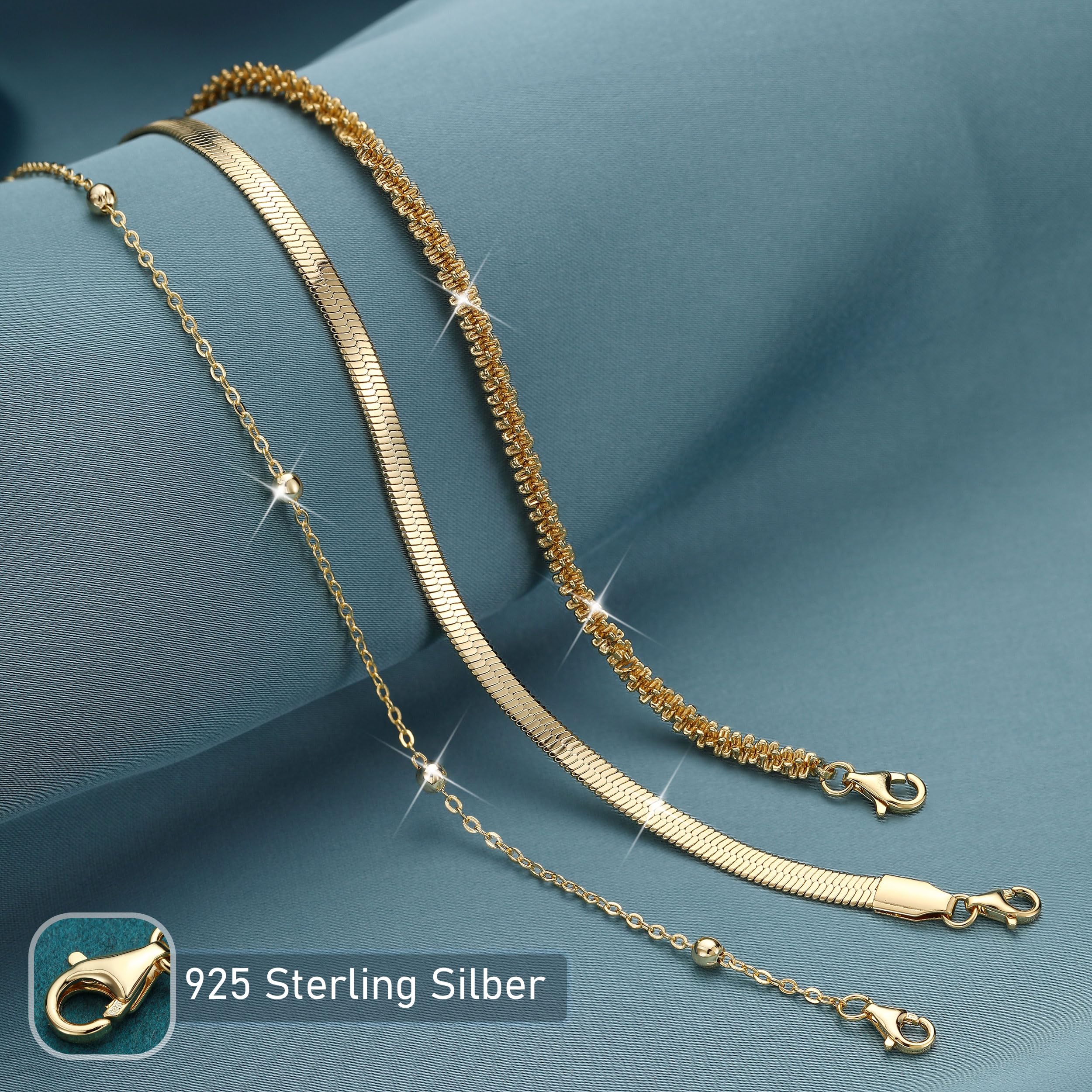 CASSIECA 3 Stück Armband Silber Damen Armbänder Silver Armband Set Gold 14 Karat Vergoldet Armbänder Damen Verstellbare Stapelbare Kettenarmband Gold Silber Schmuck für Damen