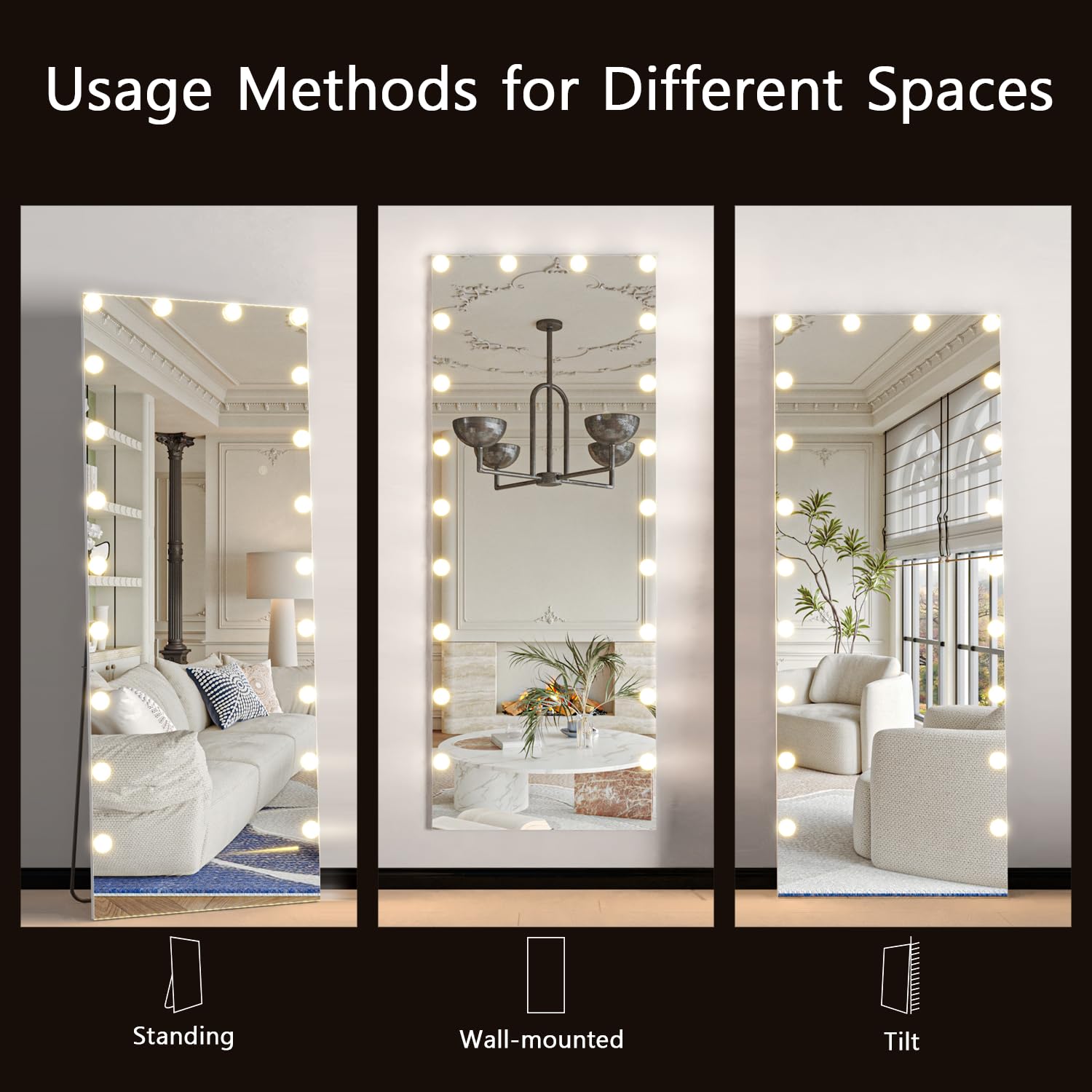 - Easy Mount Dieser LED-Ganzkörperspiegel hat drei Einsatzmöglichkeiten: Bodenspiegel, Neigungsspiegel oder Wandspiegel, der Ihren verschiedenen Bedürfnissen gerecht wird. Es ist mit einer stabilen und rutschfesten Halterung ausgestattet, die versehentliche Kippen verhindert. Der Spiegel verfügt über zwei hängende Löcher an jeder Ecke des Rückens, die eine vielseitige vertikale oder horizontale Wandmontage ermöglichen