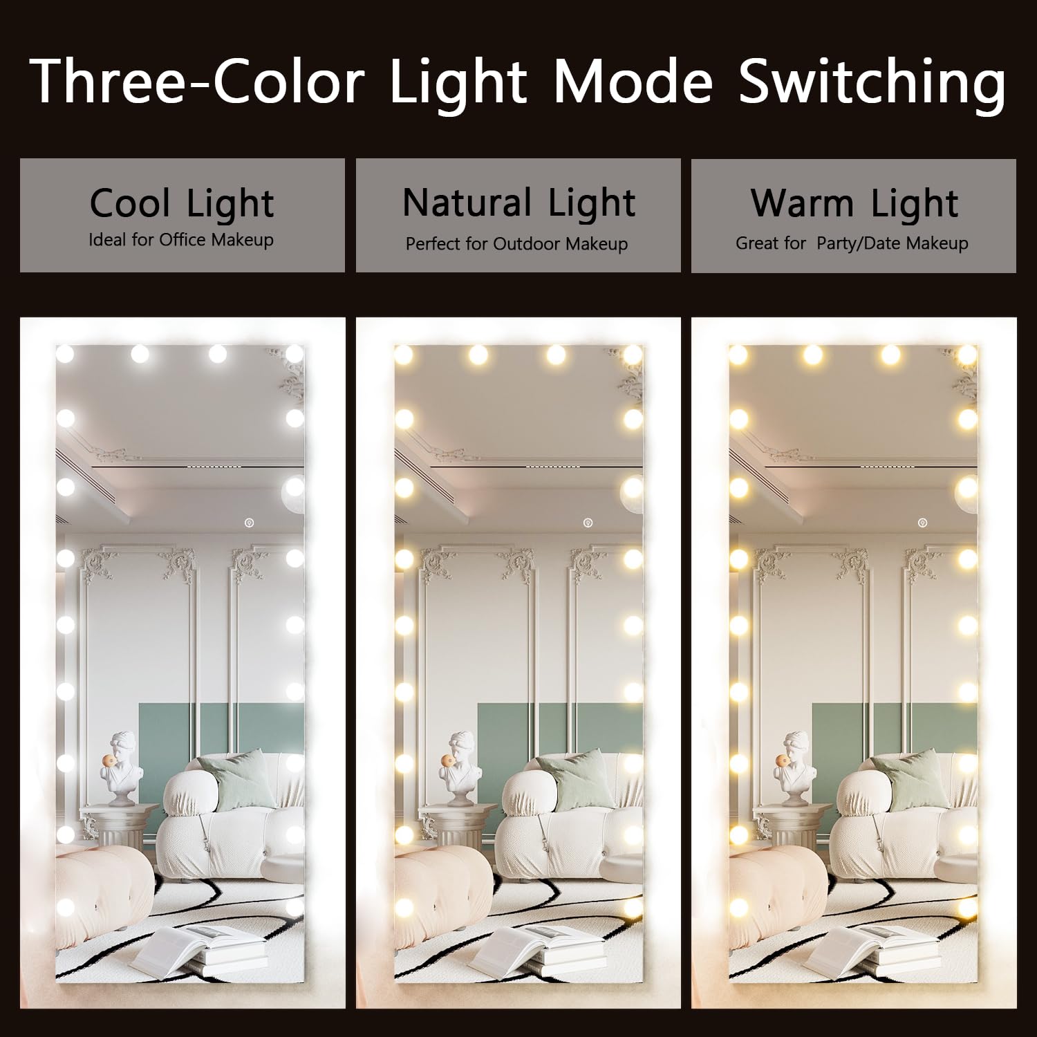 CASSILANDO Voll Länge Spiegel mit Lichtern, 160x50 Boden Körper Hollywood StehendSpiegel, Wand montierte Spiegel mit Licht für Schlafzimmer, Dimmen & 3 Farbmodi (Weiss)