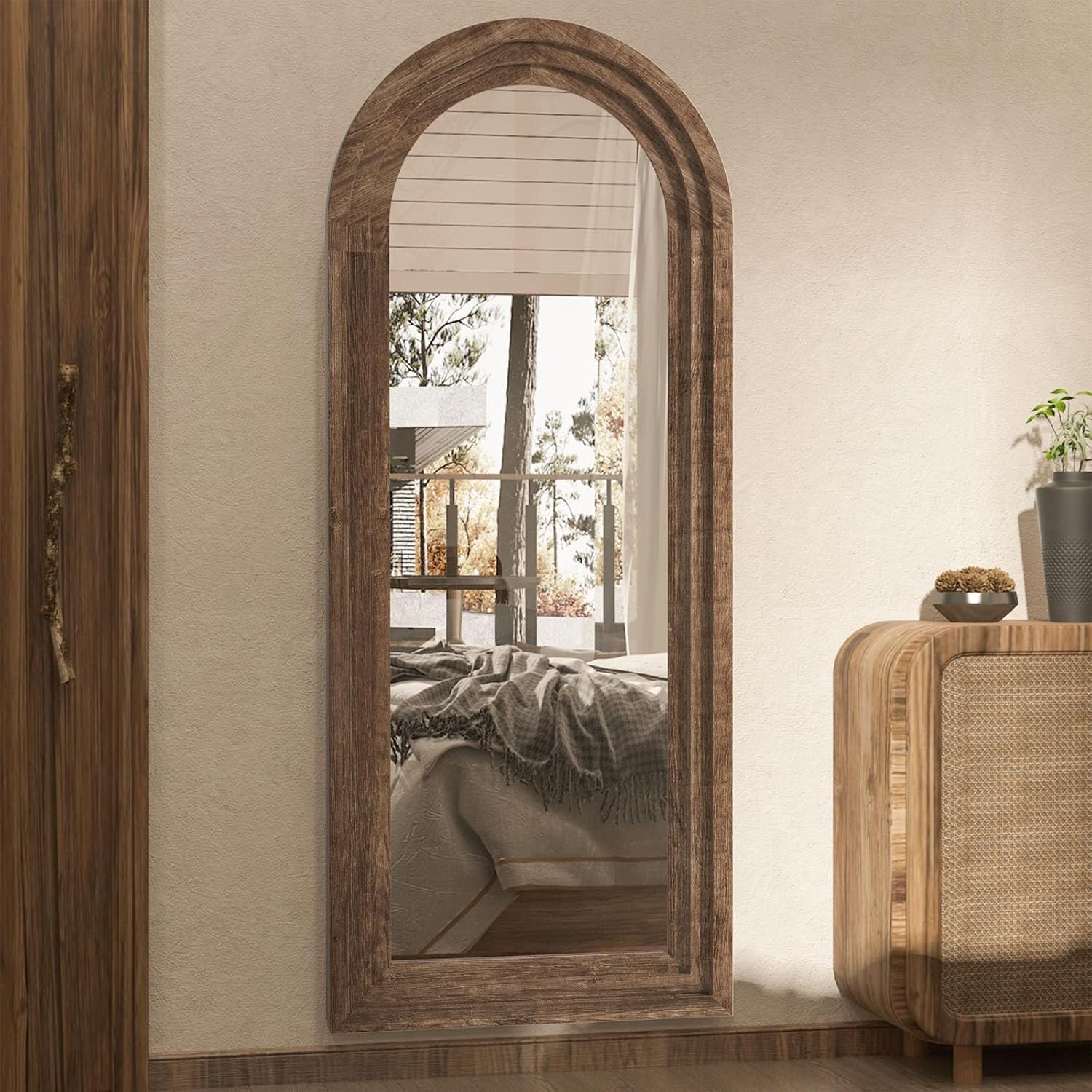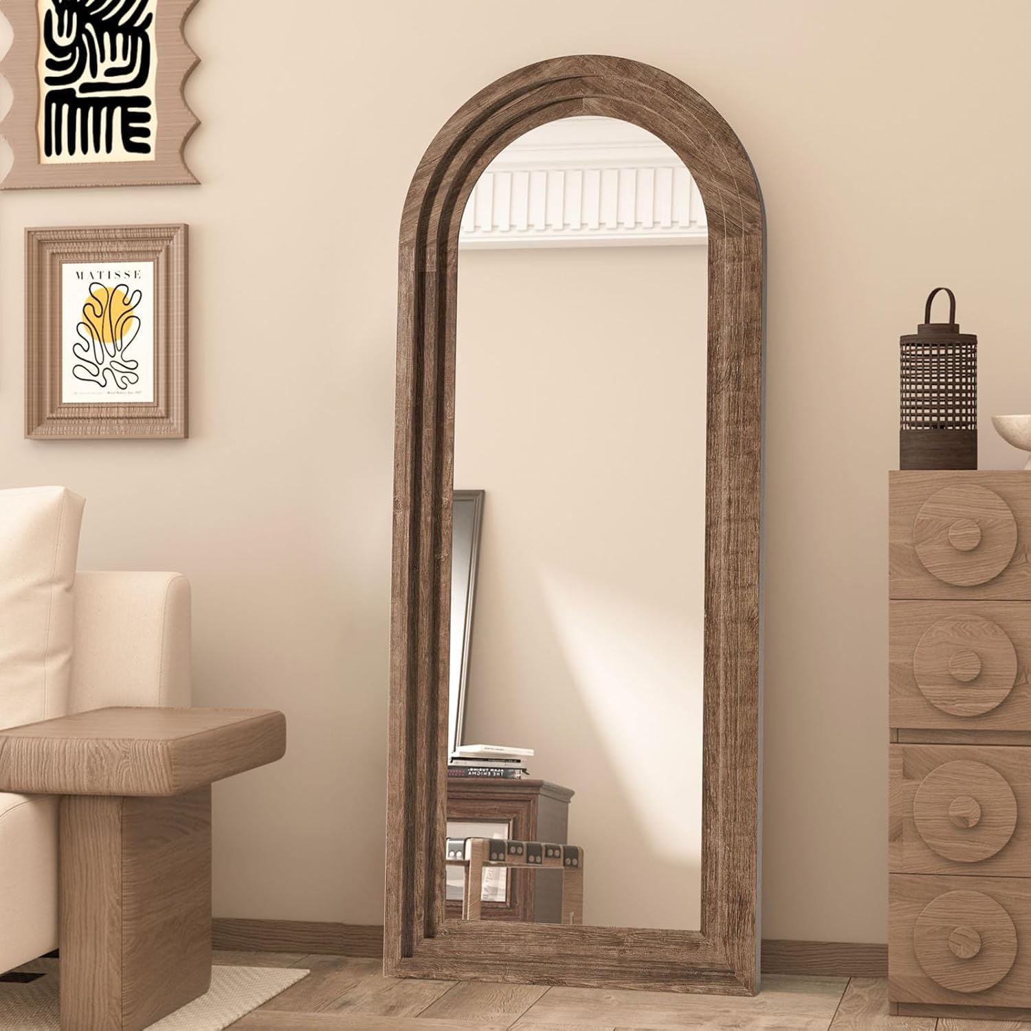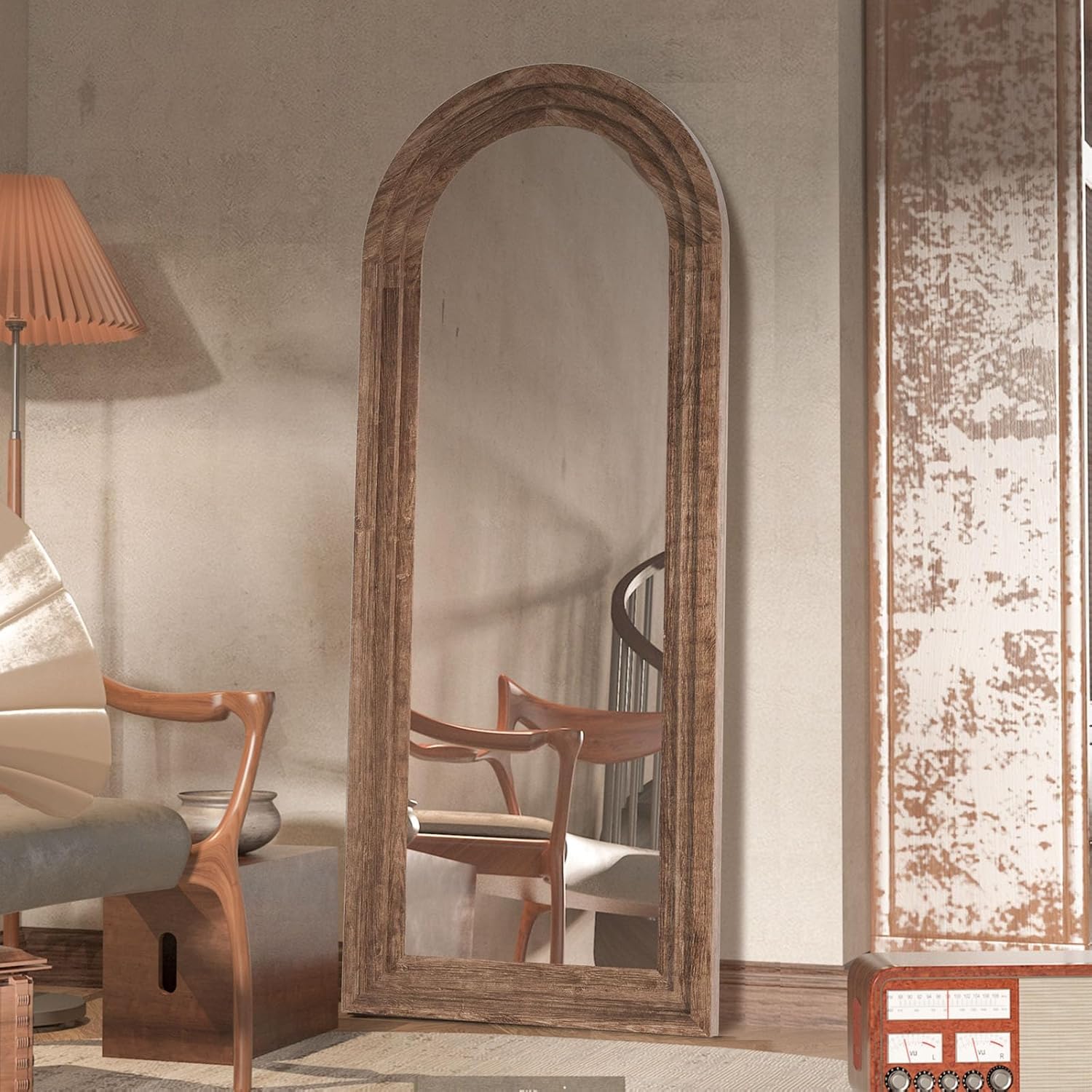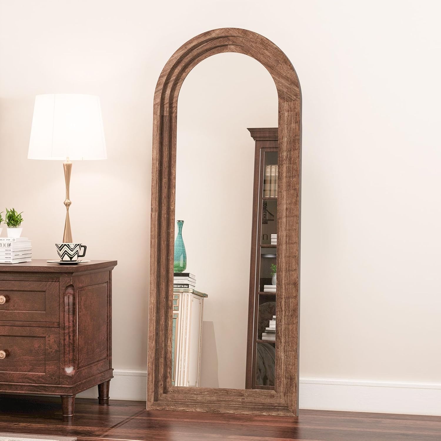 CASSILANDO 165x60cm Zoll Bogen Holz Rahmen Spiegel Distressed Finish für Wand/Boden, Wohnzimmer, Schlafzimmer, Eingang (Kaffee)