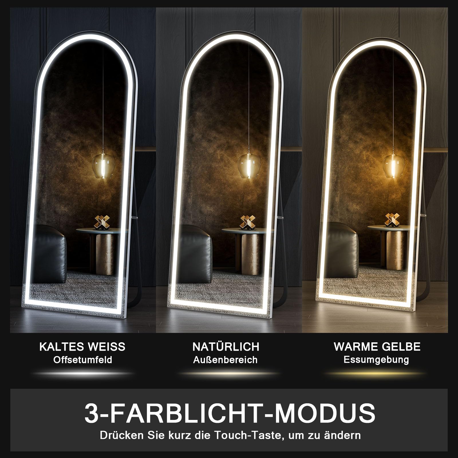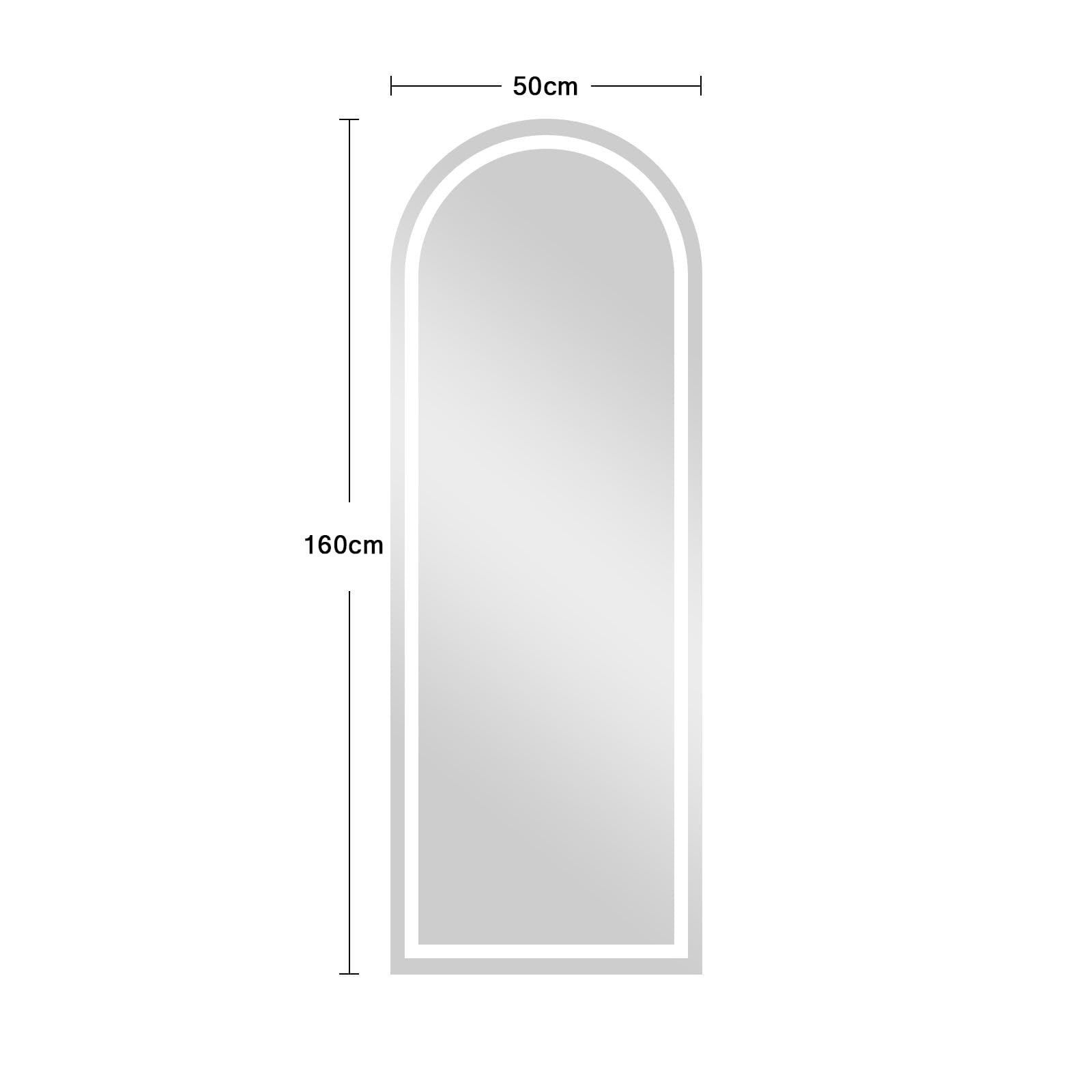 - Grosser LED Smart Ganzkörperspiegel 160x50 LED beleuchteter Spiegel, oben gewölbtes Design, dieser LED beleuchtete Spiegel ist mit mehreren Schichten für verbesserten Schutz entworfen. Der Spiegel ist mit einem Aluminiumlegierungsrahmen mit originaler Kantenversiegelungstechnologie ummantelt, wodurch eine lange Haltbarkeit gewährleistet wird