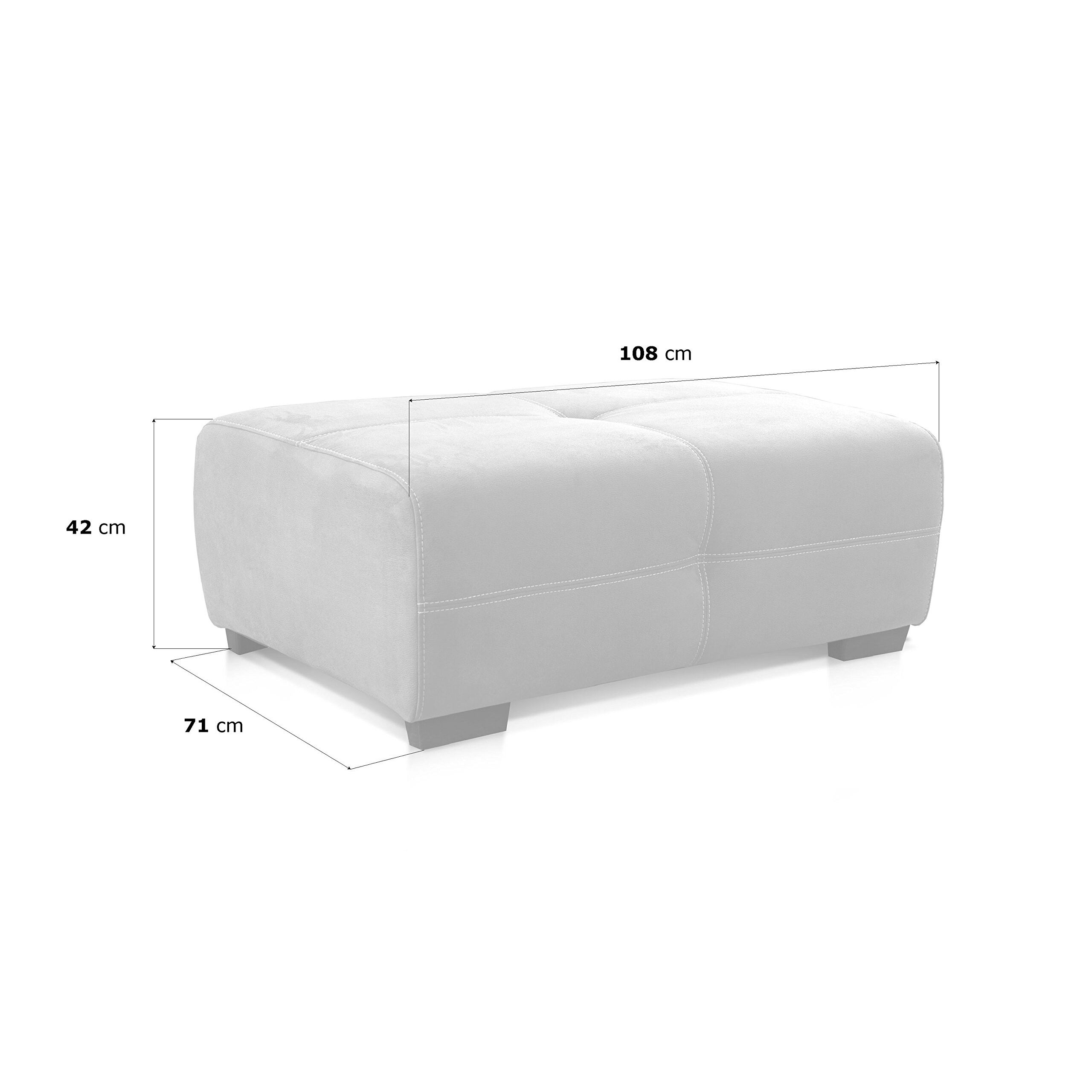 Cavadore Mavericco – Moderne Wohnzimmermöbel mit Liebe zum Detail Ob als Big Sofa oder als Ecksofa, die Polstergarnitur Mavericco besticht mit einer aufwendigen Verarbeitung und einem zeitlosen Design. Ein passender Hocker ist ebenfalls erhältlich.Eigenschaften:Modernes Polsterprogramm mit aufwendiger Verarbeitung und hoher QualitätMikrofaser mit Prägung in Lederoptik mit Zweinadel-Steppung in einem beigen KontrastgarnFrei im Raum stellbarMaterialien:Bezogen mit strapazierfähiger Mikrofaser mit Prägung „Preston“ (100 % Polyester)Gestell: Massivholz und SpanplattenPolsterung Sitz: Wellenunterfederung, Filz, PUR-Schaum, WatteabdeckungPolsterung Rücken: Gummigurte, PUR-Schaum, Watteabdeckung, alle Elemente Rücken echtFuss: Holzfüsse in Buche Antik nussbaumfarben Masse Hocker:Breite: ca. 108 cm Höhe: ca. 42 cmTiefe: ca. 71 cmSitzhöhe: ca. 42 cmSitztiefe: ca. 71 cm Masse mit Verpackung:Colli 1: ca. 110 x 43 x 73 cm (BxHxT)Pflegehinweise:Sorgfältig entstaubenMit einem weichen, sauberen, feuchten Tuch und leichter Seifenlauge reinigenNicht zu nass abwischenReinigen ohne Scheuermittel wie Pulver, Stahlwolle oder LösungsmittelMontageanleitung ist beigefügt.Lieferumfang: Cavadore 503 - Hocker Mavericco mit Kontrastnaht in Beige (passend zu Big Sofa und Ecksofa Mavericco) / Nussbaumfarbene Holzfüsse in Buche Antik