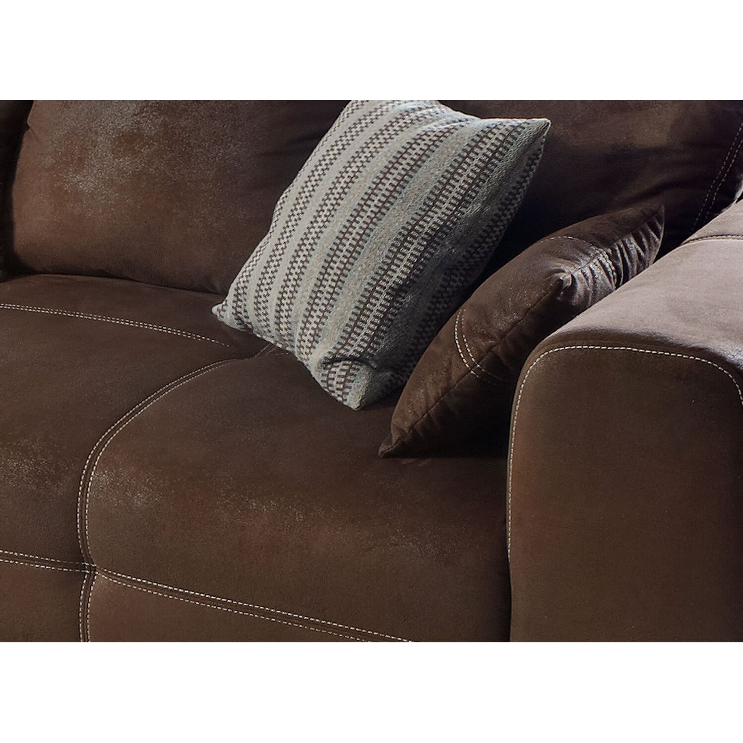 Cavadore Mavericco – Moderne Wohnzimmermöbel mit Liebe zum Detail Ob als Big Sofa oder als Ecksofa, die Polstergarnitur Mavericco besticht mit einer aufwendigen Verarbeitung und einem zeitlosen Design. Ein passender Hocker ist ebenfalls erhältlich.Eigenschaften:Modernes Polsterprogramm mit aufwendiger Verarbeitung und hoher QualitätMikrofaser mit Prägung in Lederoptik mit Zweinadel-Steppung in einem beigen KontrastgarnFrei im Raum stellbarMaterialien:Bezogen mit strapazierfähiger Mikrofaser mit Prägung „Antik“ (100 % Polyester)Gestell: Massivholz und SpanplattenPolsterung Sitz: Wellenunterfederung, Filz, PUR-Schaum, WatteabdeckungPolsterung Rücken: Gummigurte, PUR-Schaum, Watteabdeckung, alle Elemente Rücken echtFuss: Holzfüsse in Buche Antik nussbaumfarben Masse Big Sofa:Breite: ca. 287 cm Höhe: ca. 69 cm (mit Rückenkissen ca. 88 cm)Tiefe: ca. 108 cmSitzhöhe: ca. 42 cmSitztiefe: ca. 62 cm Masse mit Verpackung:Colli 1: ca. 148 x 94 x 110 cm (BxHxT)Colli 2: ca. 148 x 94 x 110 cm (BxHxT)Pflegehinweise:Sorgfältig entstaubenMit einem weichen, sauberen, feuchten Tuch und leichter Seifenlauge reinigenNicht zu nass abwischenReinigen ohne Scheuermittel wie Pulver, Stahlwolle oder LösungsmittelMontageanleitung ist beigefügt.Lieferumfang: Cavadore 503 - Big Sofa Mavericco mit Kontrastnaht in Beige / Inkl. 4 Rückenkissen (65 x 55 cm) und 3 Zierkissen (35 x 35 cm) im Polsterstoff des Sofas / Nussbaumfarbene Holzfüsse in Buche Antik