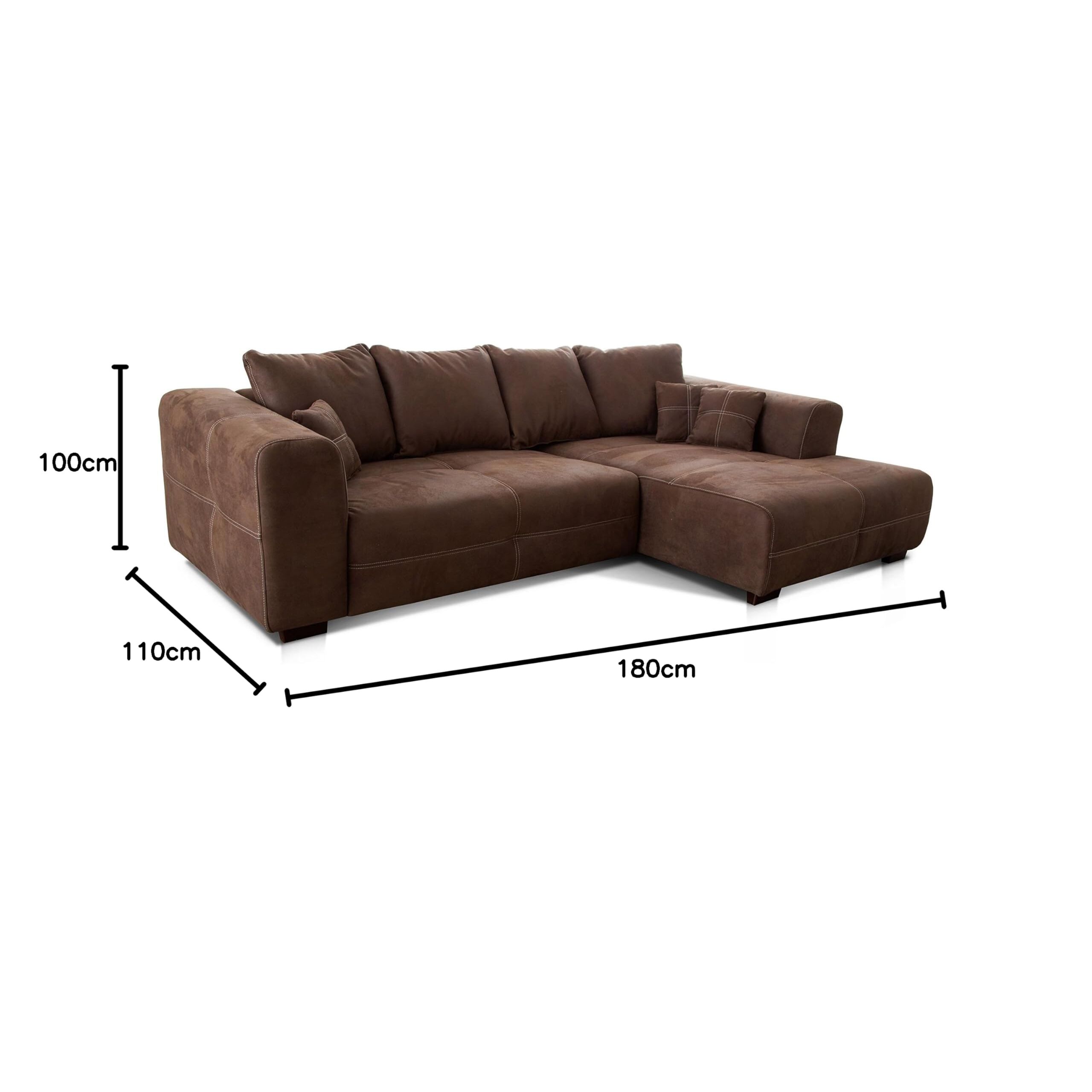Cavadore Ecksofa Mavericco / XXL Eckcouch Inkl. Rückenkissen und Zierkissen / Longchair rechts / Industrial Style / 285 x 69 x 170 (BxHxT) / Mikrofaser Braun