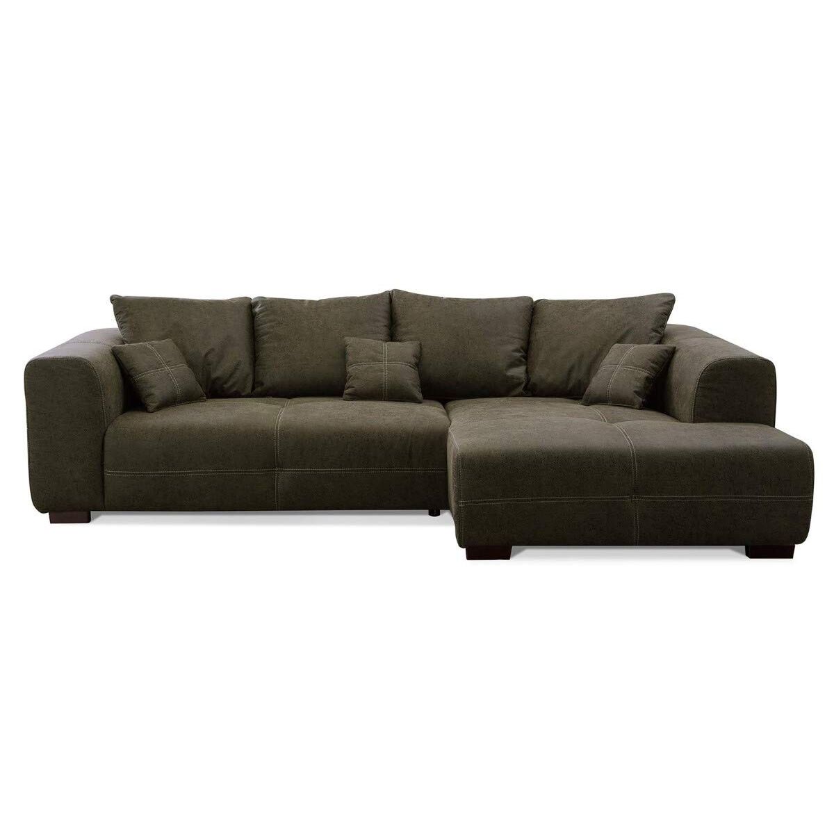 Cavadore Mavericco – Moderne Wohnzimmermöbel mit Liebe zum Detail Ob als Big Sofa oder als Ecksofa, die Polstergarnitur Mavericco besticht mit einer aufwendigen Verarbeitung und einem zeitlosen Design. Ein passender Hocker ist ebenfalls erhältlich.Eigenschaften:Modernes Polsterprogramm mit aufwendiger Verarbeitung und hoher QualitätMikrofaser mit Prägung in Lederoptik mit Zweinadel-Steppung in einem beigen KontrastgarnFrei im Raum stellbarMaterialien:Bezogen mit strapazierfähiger Mikrofaser „Taurus“ in Büffellederoptik (100 % Polyester)Gestell: Massivholz und SpanplattenPolsterung Sitz: Wellenunterfederung, Filz, PUR-Schaum, WatteabdeckungPolsterung Rücken: Gummigurte, PUR-Schaum, Watteabdeckung, alle Elemente Rücken echtFuss: Holzfüsse in Buche Antik nussbaumfarben Masse Ecksofa:Breite: ca. 285 cm Höhe: ca. 69 cm (mit Rückenkissen ca. 88 cm)Tiefe: ca. 170 cmSitzhöhe: ca. 42 cmSitztiefe: ca. 62 cmPflegehinweise:Sorgfältig entstaubenMit einem weichen, sauberen, feuchten Tuch und leichter Seifenlauge reinigenNicht zu nass abwischenReinigen ohne Scheuermittel wie Pulver, Stahlwolle oder LösungsmittelMontageanleitung ist beigefügt.Lieferumfang: Cavadore 503 - Ecksofa Mavericco mit Kontrastnaht in Beige, davorstehend: Sofa 3-sitzig links, Longchair rechts / Inkl. 4 Rückenkissen (65 x 55 cm) und 3 Zierkissen (35 x 35 cm) im Polsterstoff / Nussbaumfarbene Holzfüsse in Buche Antik