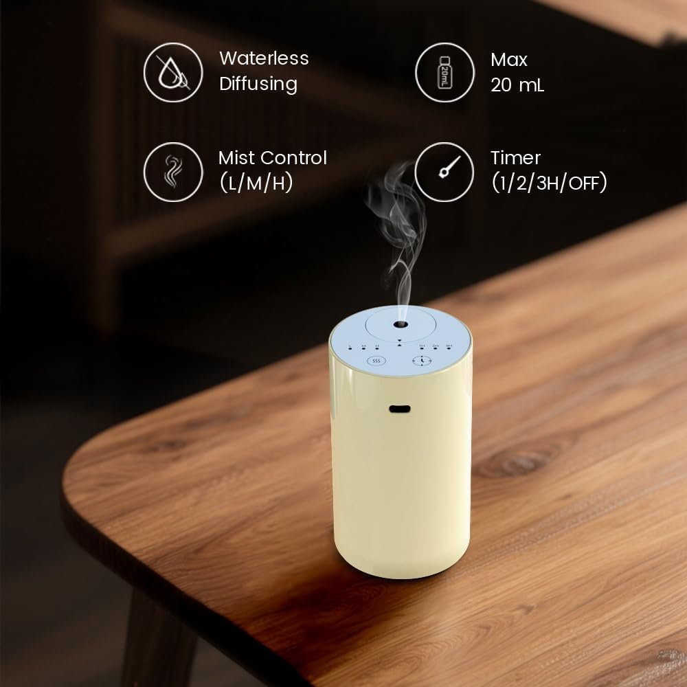 Cavir Wasserloser Diffusor für ätherische Öle, tragbare Mini Duft Luftmaschine Aromatherapie Zerstäubende Diffusor USB geladen 1/2/3H/Zeit Aus 3 Nebel Niveau für Home Room Autos Büro-Weiss