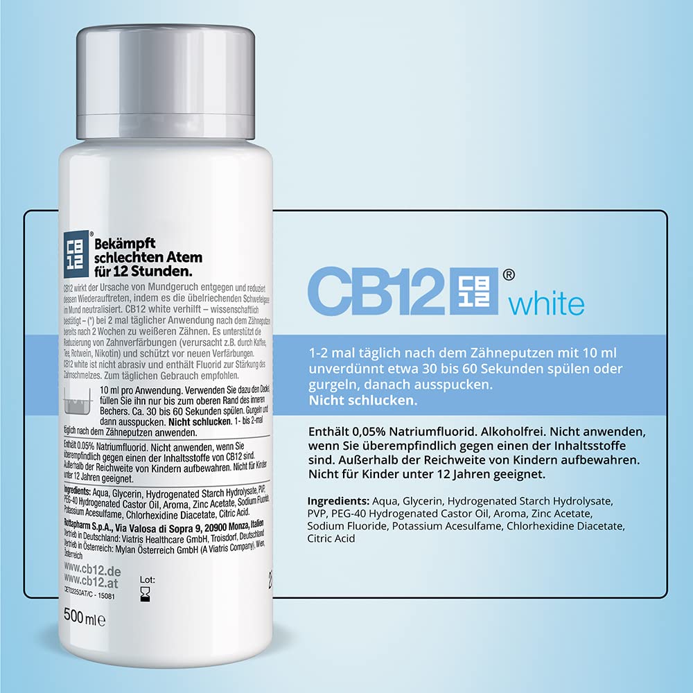 CB12 White – Angenehmer Atem für 12 Stunden und weissere Zähne – 500 ml, Minze, für Mundgeruch Behandlung (Packung mit 2)