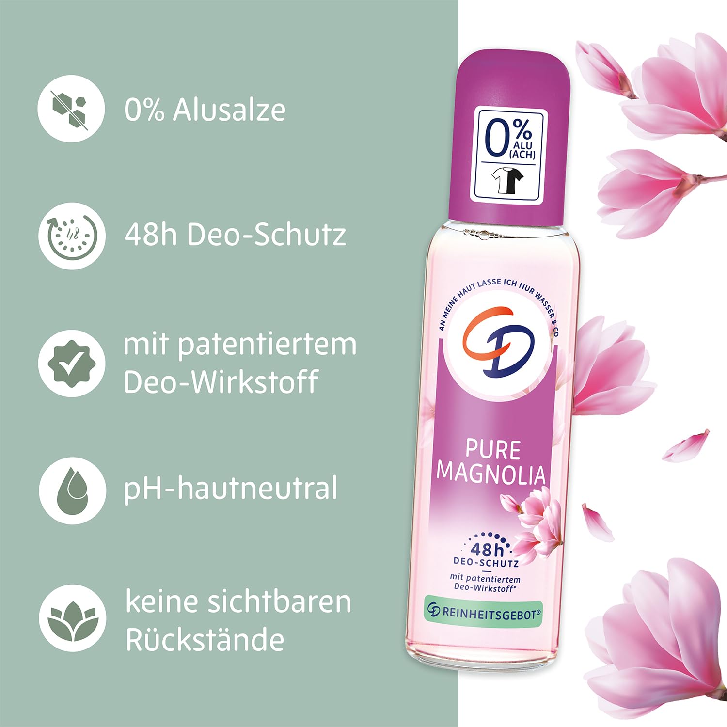 CD Deo Zerstaeuber Pure Magnolia, mit Magnolien-Extrakt, ohne Aluminiumsalze, 48h Schutz, patentierter Deo-Wirkstoff, vegan, fuer empfindliche Haut, 75 ml