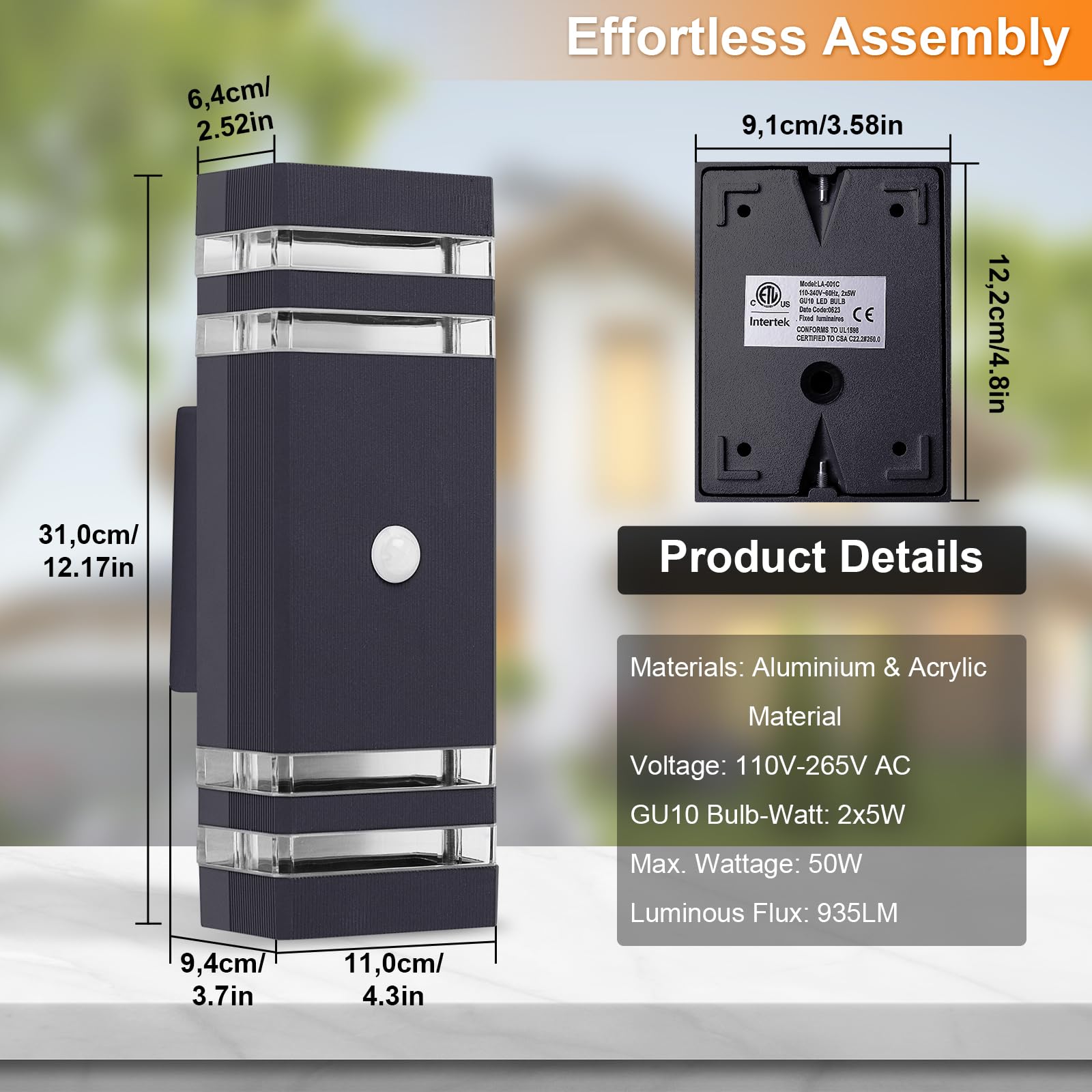 CELAVY Aussenlampe Aussenlampe mit Bewegungsmelder - LED GU10 Aussenleuchte Aussenleuchte Wand, IP65 GU10 Up Down Wandleuchte Wandlampe aussen, Aussenbeleuchtung Ausenbeleutung Hauswand, Anthrazit