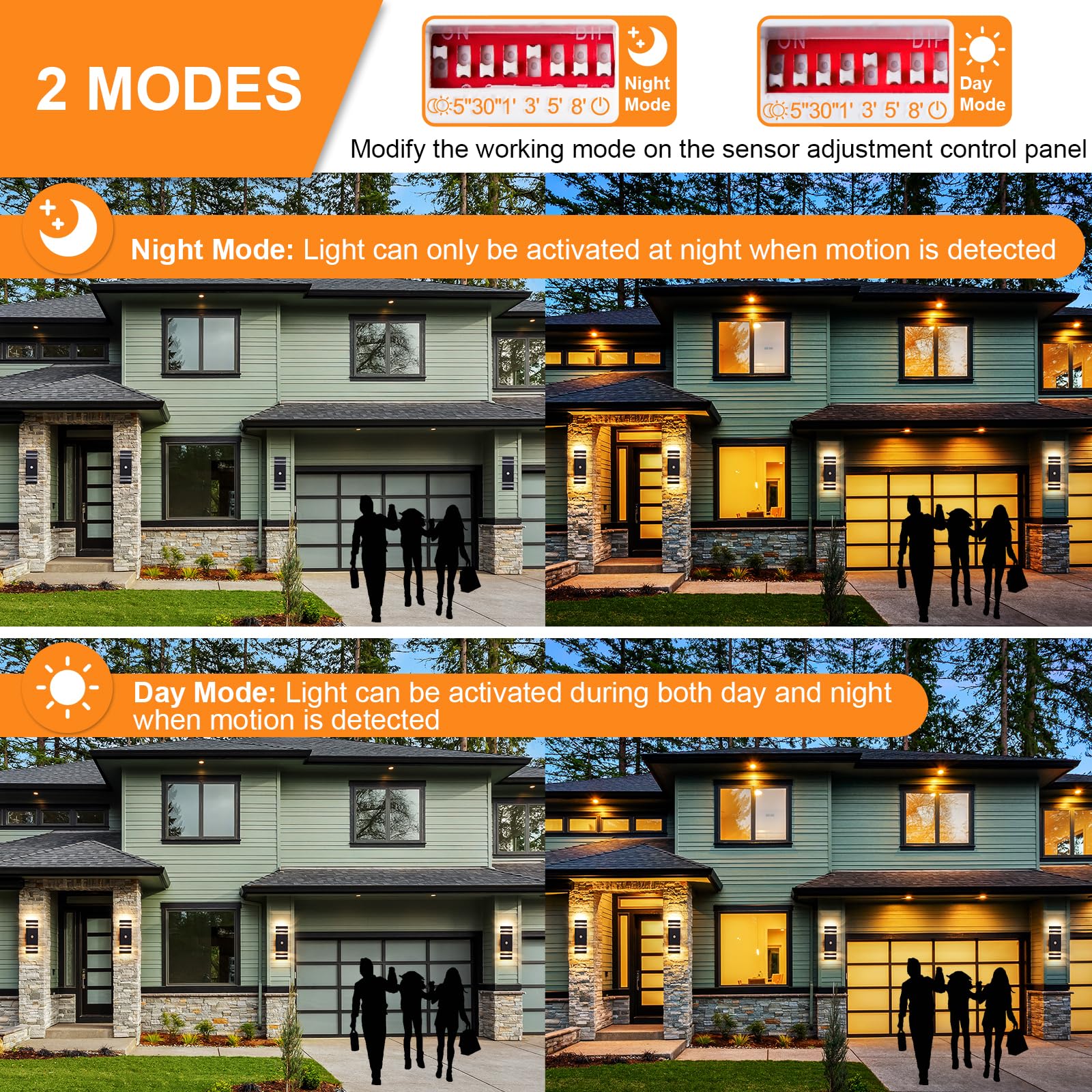 Die CELAVY Aussenlampe mit Bewegungsmelder ist eine moderne und energiesparende LED Wandleuchte, die perfekt für den Einsatz im Aussenbereich geeignet ist. Mit ihrer rechteckigen Form und dem eleganten Anthrazit-Design passt sie perfekt zu verschiedenen Einrichtungsstilen. Die Lampe ist mit einem einstellbaren Bewegungssensor ausgestattet, der zwischen Tag- und Nachtmodus wechseln und die Ausschaltzeit anpassen kann. Die warme, gleichmässige Beleuchtung wird durch die oberen und unteren Lichtauslässe abgegeben und verleiht Ihrem Zuhause eine gemütliche Atmosphäre. Die robuste Konstruktion aus Aluminium und Acryl ist UV-beständig, stossfest und chemikalienbeständig, selbst unter extremen Wetterbedingungen. Die IP65-Schutzklasse macht die Lampe wasser- und staubdicht, ideal für den Einsatz im Garten, auf der Terrasse oder an der Haustür. Die einfache Installation und die detaillierte Anleitung machen die Montage an der Wand zum Kinderspiel. Die CELAVY Aussenlampe mit Bewegungsmelder ist eine hochwertige und vielseitige Wahl für Ihre Aussenbeleuchtung.