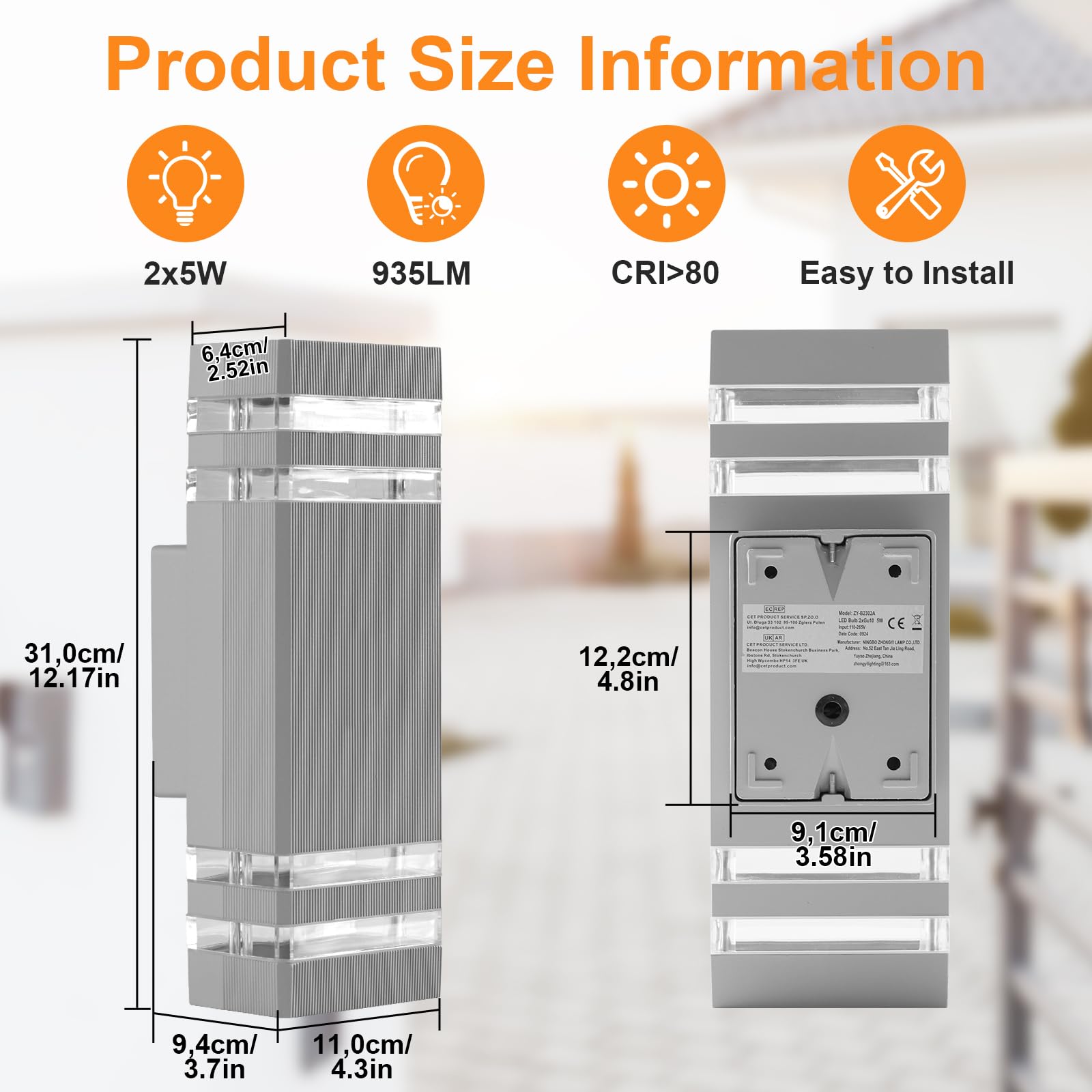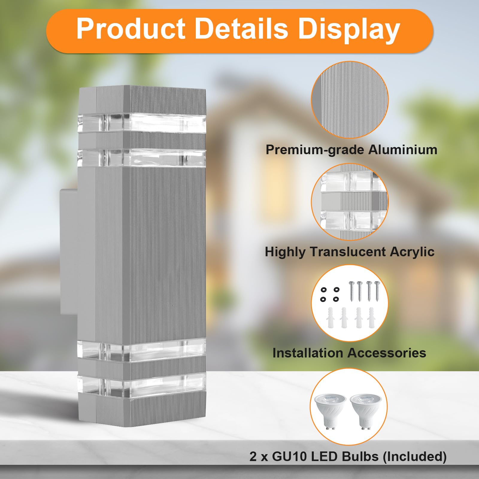 CELAVY LED Wandleuchte Wandlampe aussen - IP65 Aussenlampe Aussenlampe Wand, GU10 Up Down Aussenleuchte Aussenleuchte Aussenwandleuchte Aussenbeleuchtung Lampe Hauswand Terrasse Haus Aussen, Hellgrau