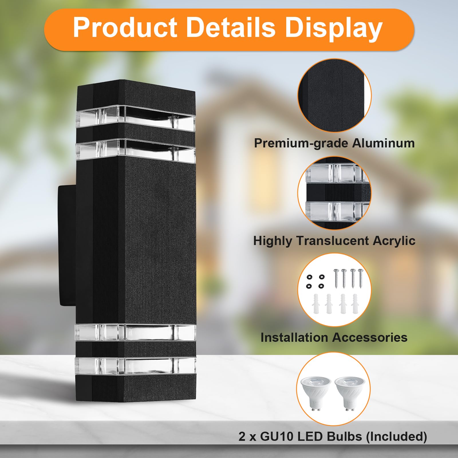 Die CELAVY moderne Aussenlampe im europäischen Stil sorgt für einen schönen Lichteffekt. Sie ist einfach zu montieren und wird durch eine ausführliche Installationsanleitung unterstützt. Die aussenwandleuchte besteht aus hochwertigem Aluminiumdruckguss und UV-beständigem Acrylmaterial. Mit den GU10 LED-Lampen können Sie bis zu 80% der Stromkosten sparen. Die IP65-Schutzklasse macht die Terrassenbeleuchtung wasser- und staubbeständig, so dass Sie sie sowohl im Innen- als auch im Aussenbereich verwenden können. Zudem hat die Aussenbeleuchtung eine lange Lebensdauer von etwa 25.000 Stunden.