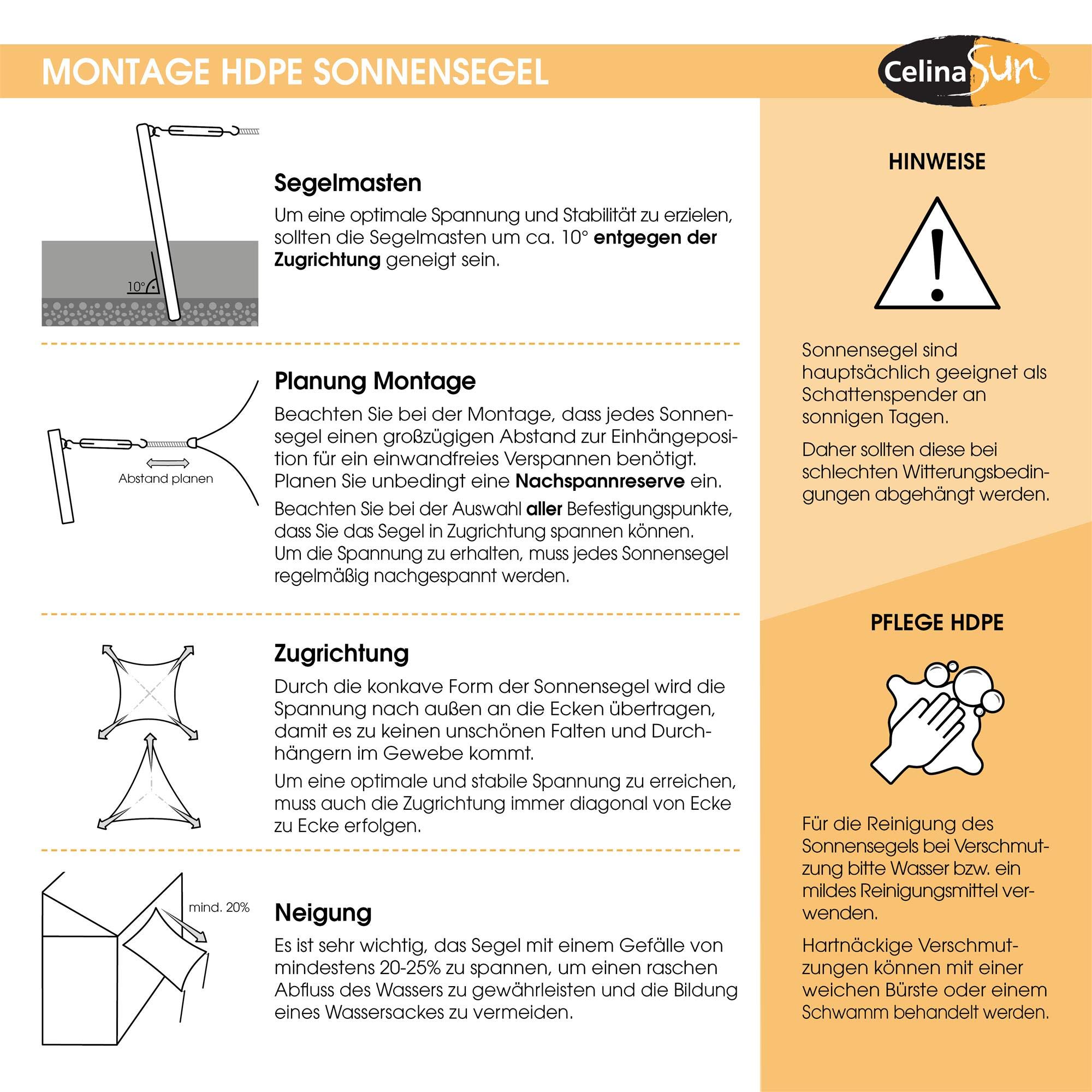 Das Sonnensegel von CelinaSun ist ideal für Schatten im Sommer. Auf der Terrasse, dem Balkon oder beim Camping lässt er sich schnell und einfach installieren. Unser Segel.