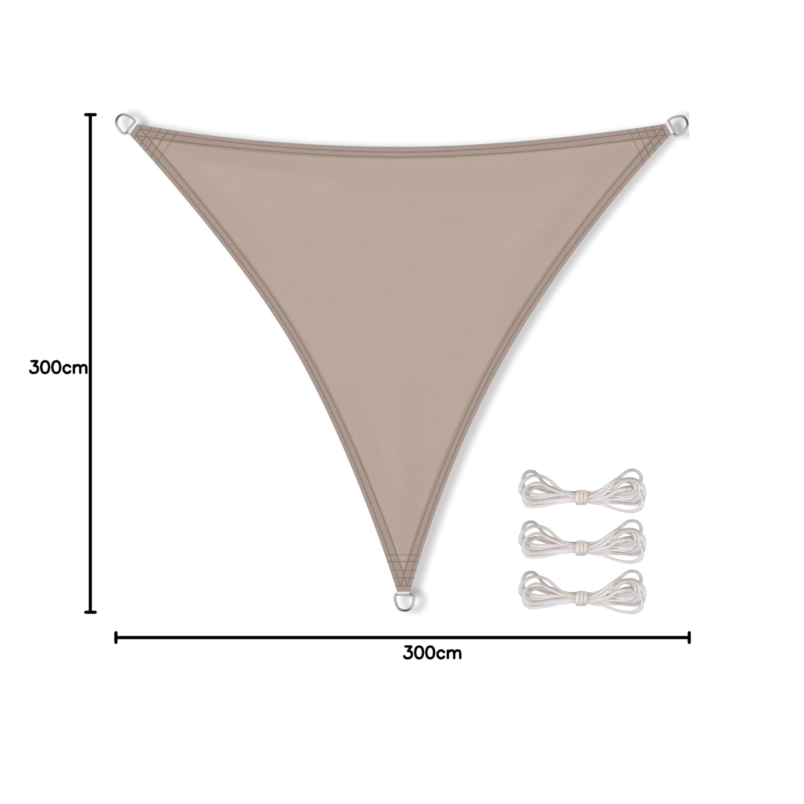 CelinaSun Sonnensegel inkl Befestigungsseile Premium PES wasserabweisend imprägniert Dreieck gleichseitig 3 x 3 x 3 m Taupe