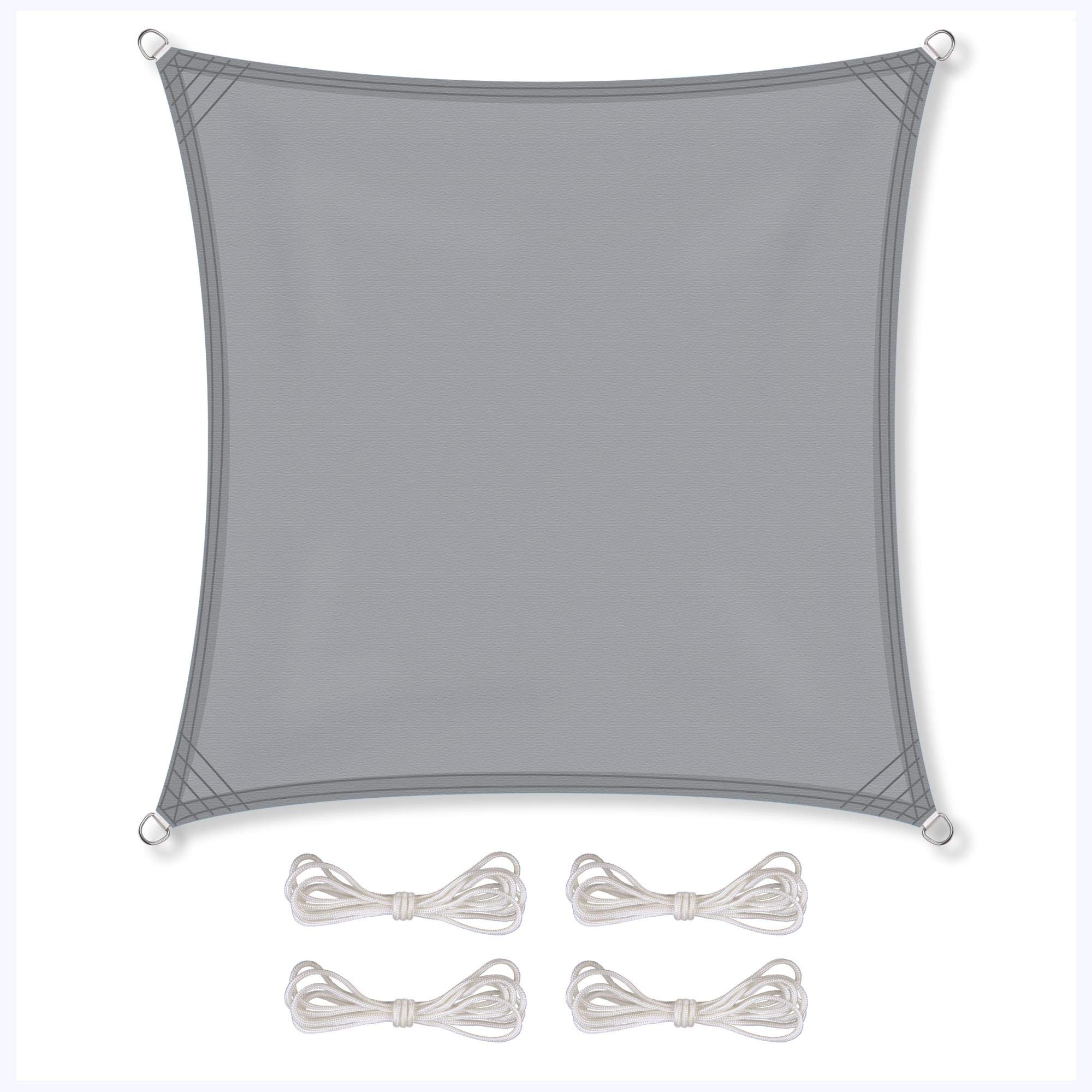 CelinaSun Sonnensegel inkl Befestigungsseile Premium PES wasserabweisend imprägniert Quadrat 3,6 x 3,6 m hell grau