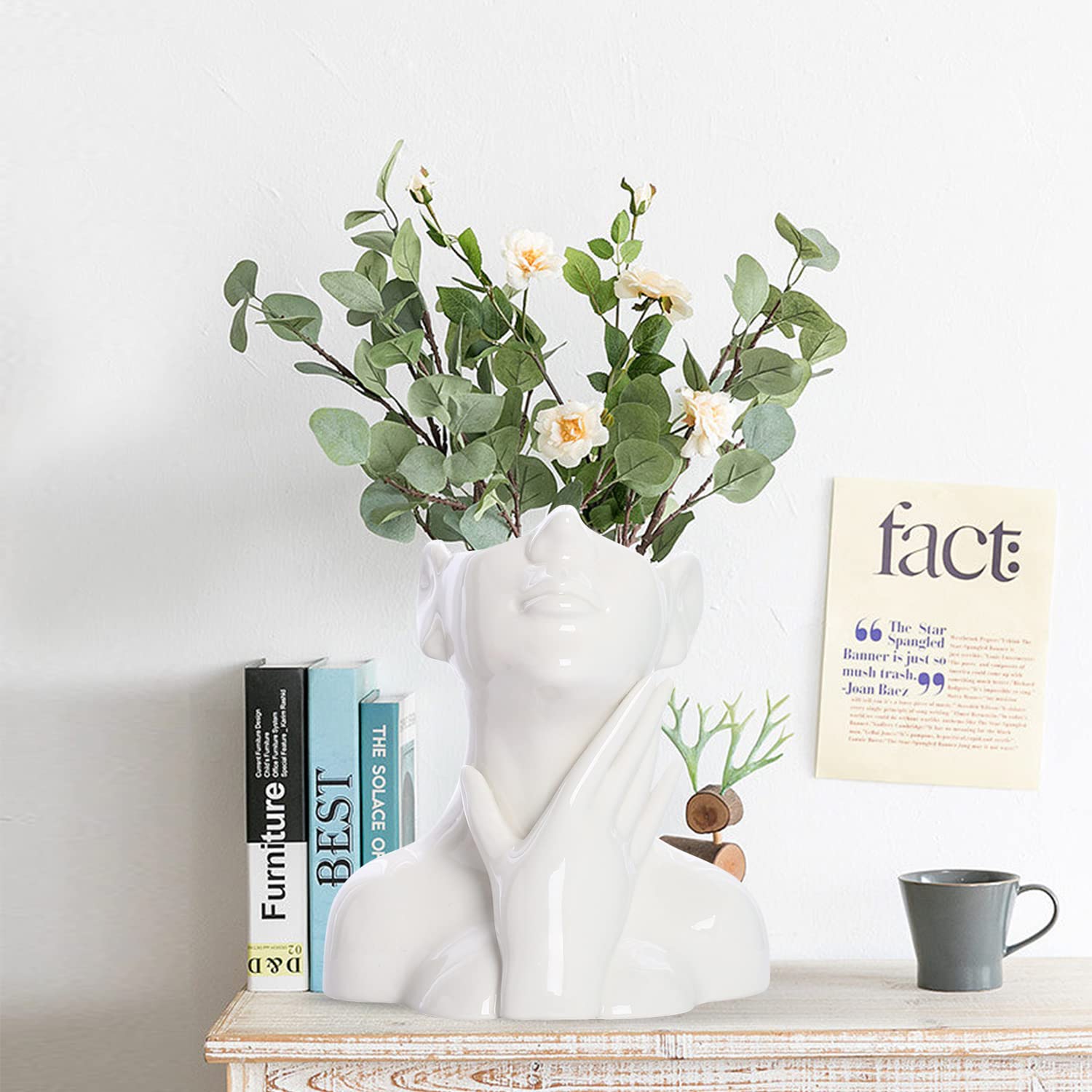 CEMABT Gesicht Vase, Keramik Körper Weibliche Form, Moderne Bauernhaus Tisch Dekor, Kleine Niedliche Bücherregal Halbgesicht Vase (Stil-A)
