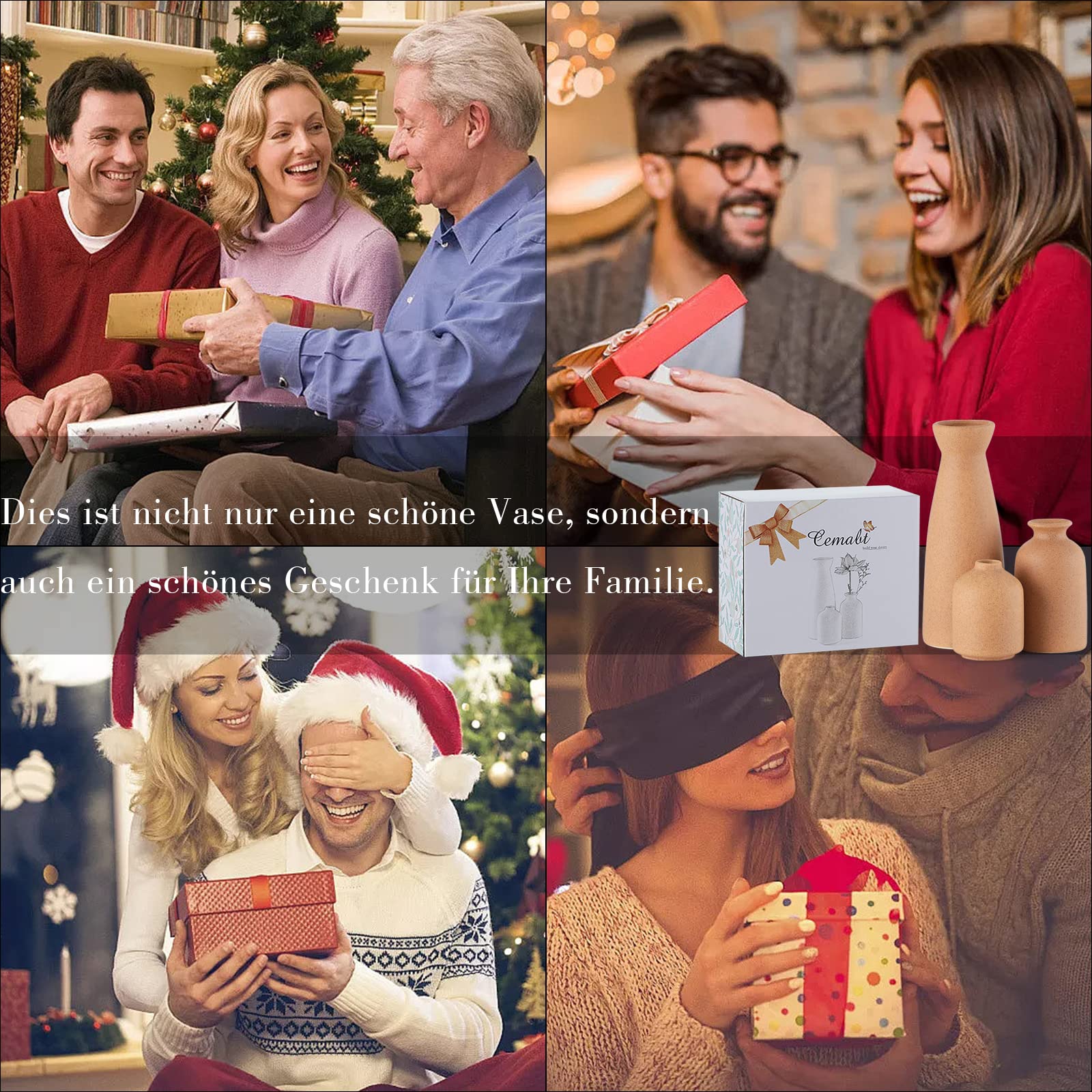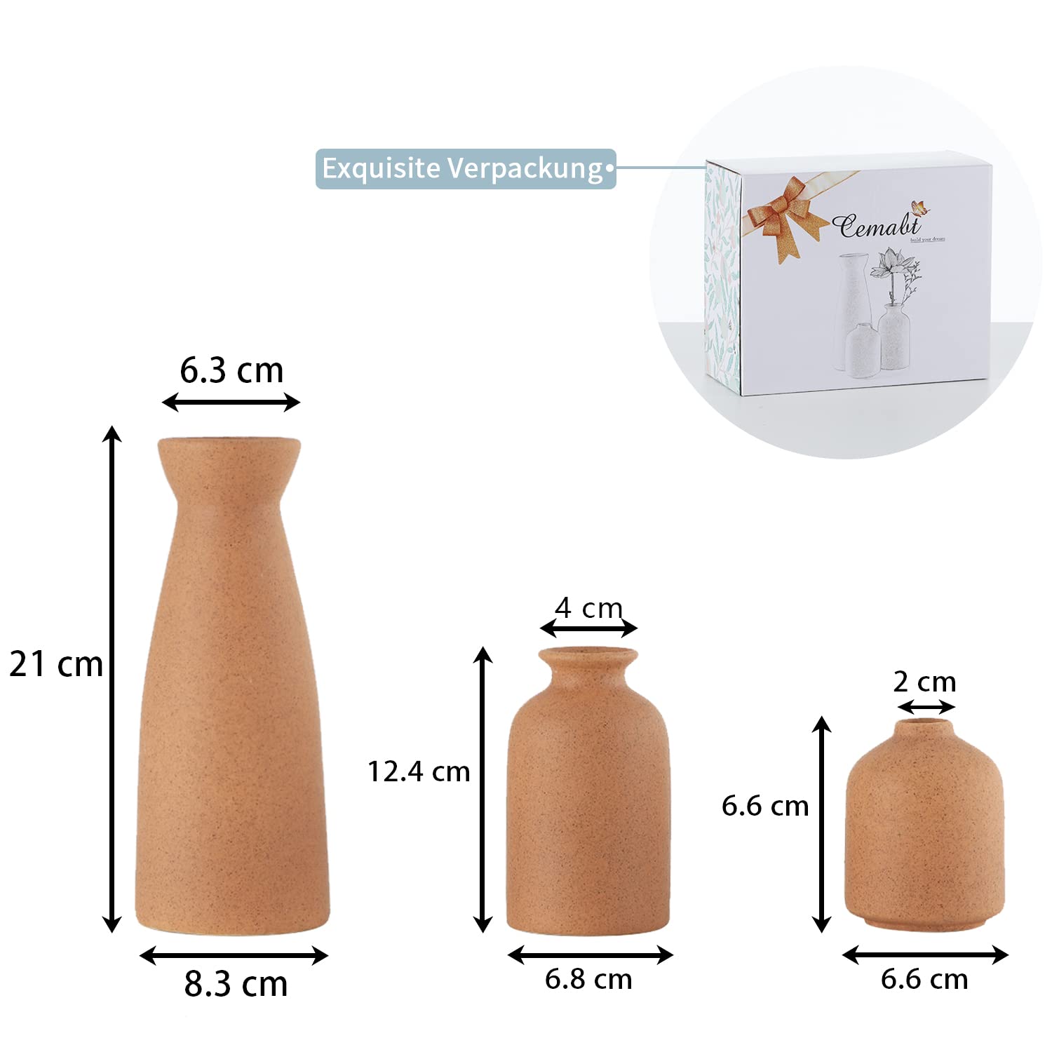 CEMABT Braun Keramik Vasen 3er-Set Kleine Blumenvasen für Dekor, Moderne rustikale Bauernhaus Home Decor, Dekorative Vasen für Pampas Grass&getrocknete Blumen, Idee Regal, Eingangsbereich- Distressed