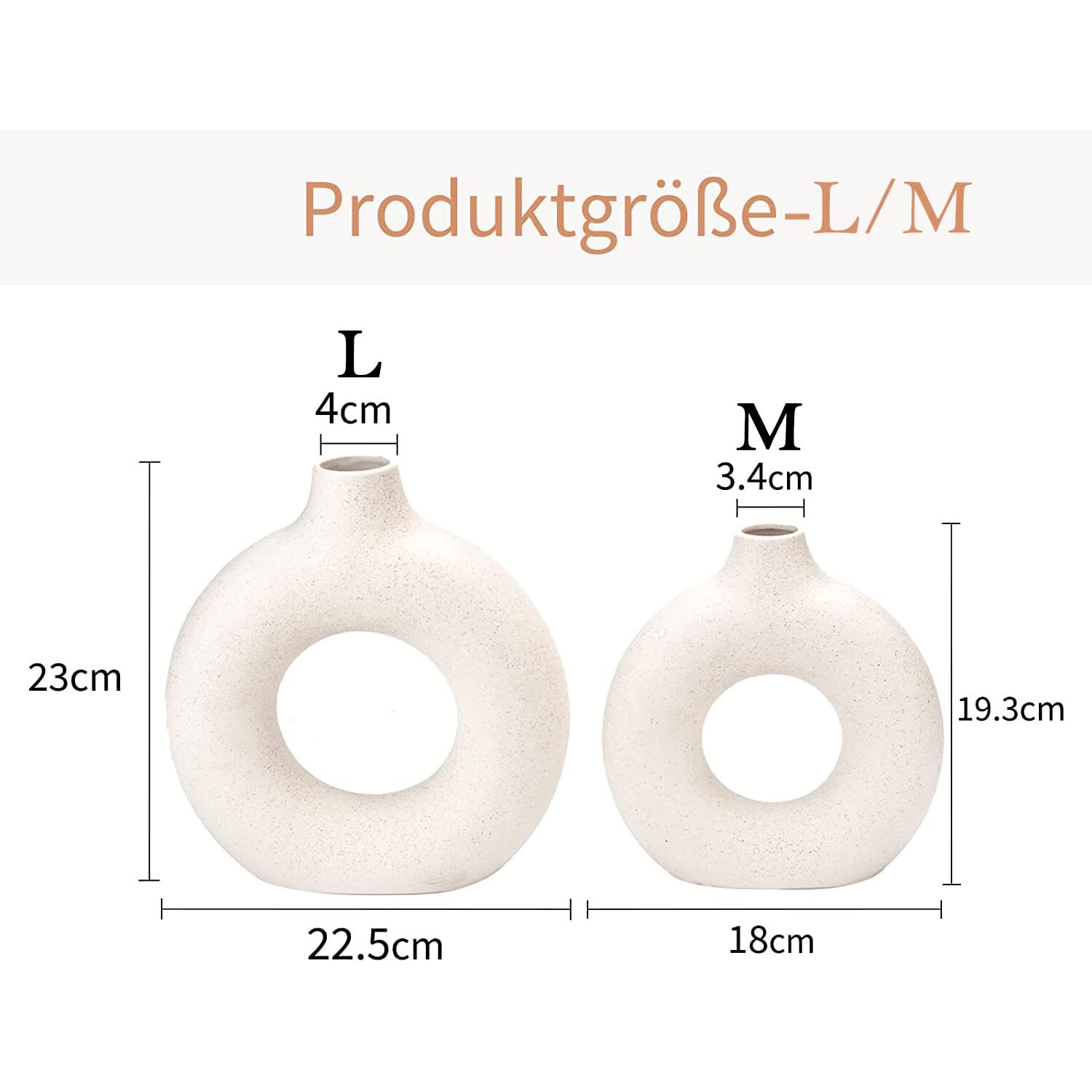 - Perfekte Grösse: S 13,5 × 14 cm, Ø 2,5 cm, M 18 x 19, Ø 3,4 cm, L 22,5 × 23, Ø 4 cm (wir verkaufen nur Vasen).