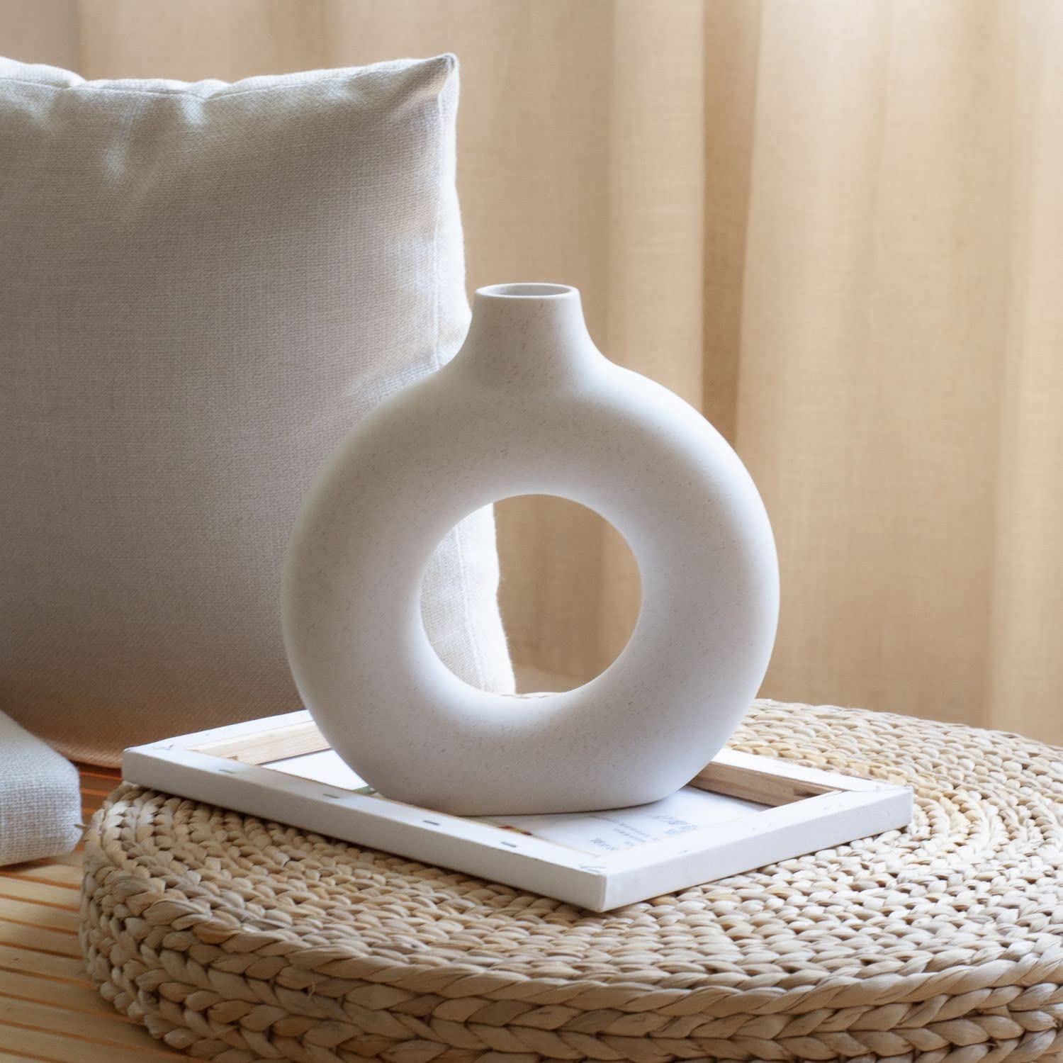 Cemabt Vasen für Pampasgras, handgefertigte Vase aus weisser Keramik, getrocknete Blumen, Ornamente für die Bürodekoration, Vasenset (L, Beige)