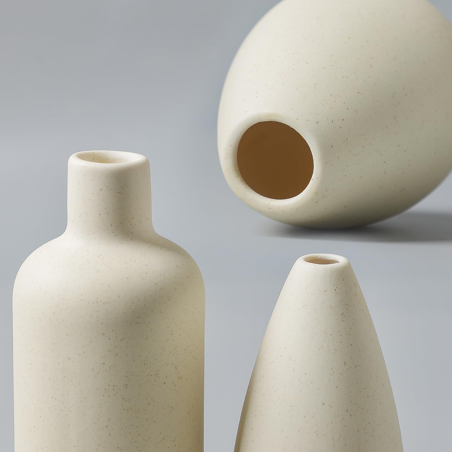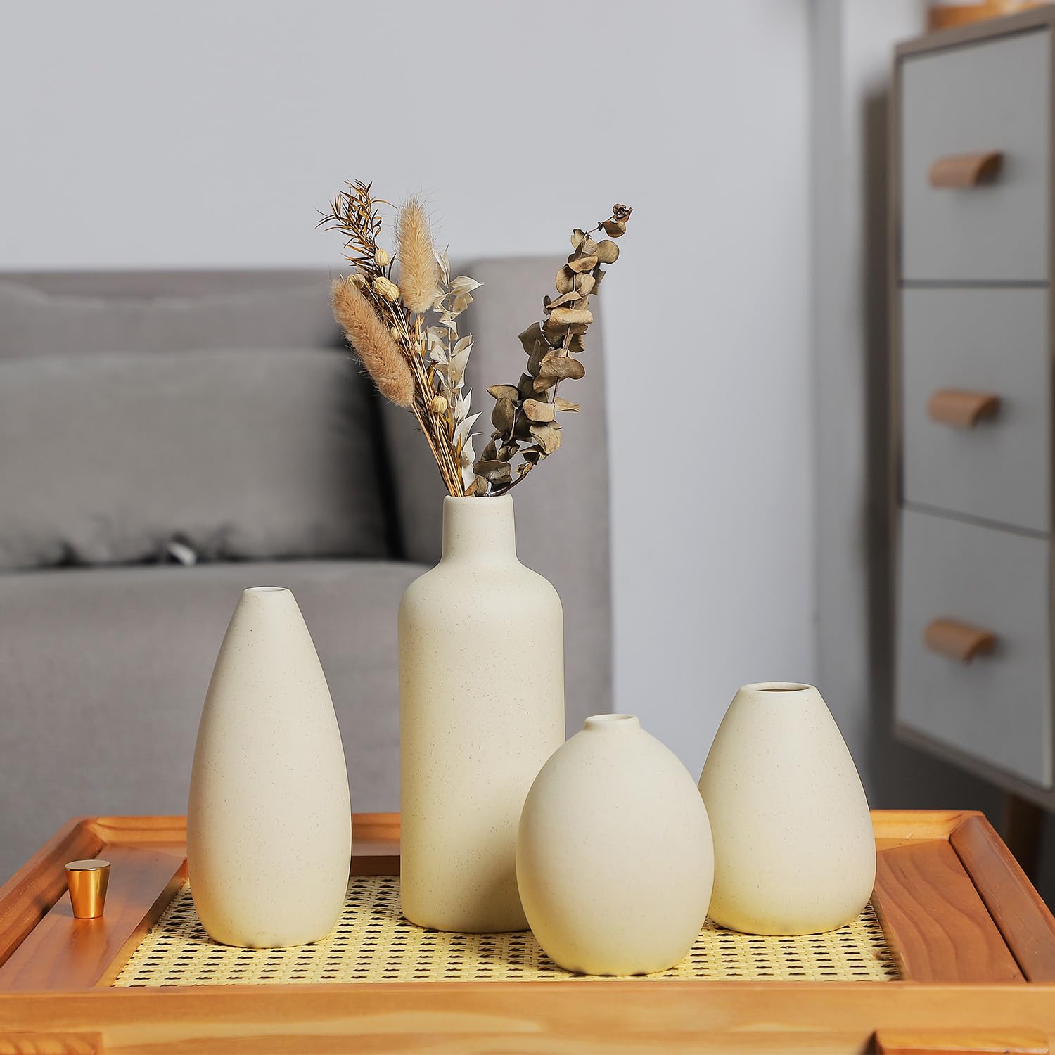 CEMABT Beige Keramik Vase Set-4 Kleine Vasen für Blumen, einzigartige Blumenvasen für Mittelstücke, dekorative Moderne Vasen für Home Decor Tisch Eingang (Beige)