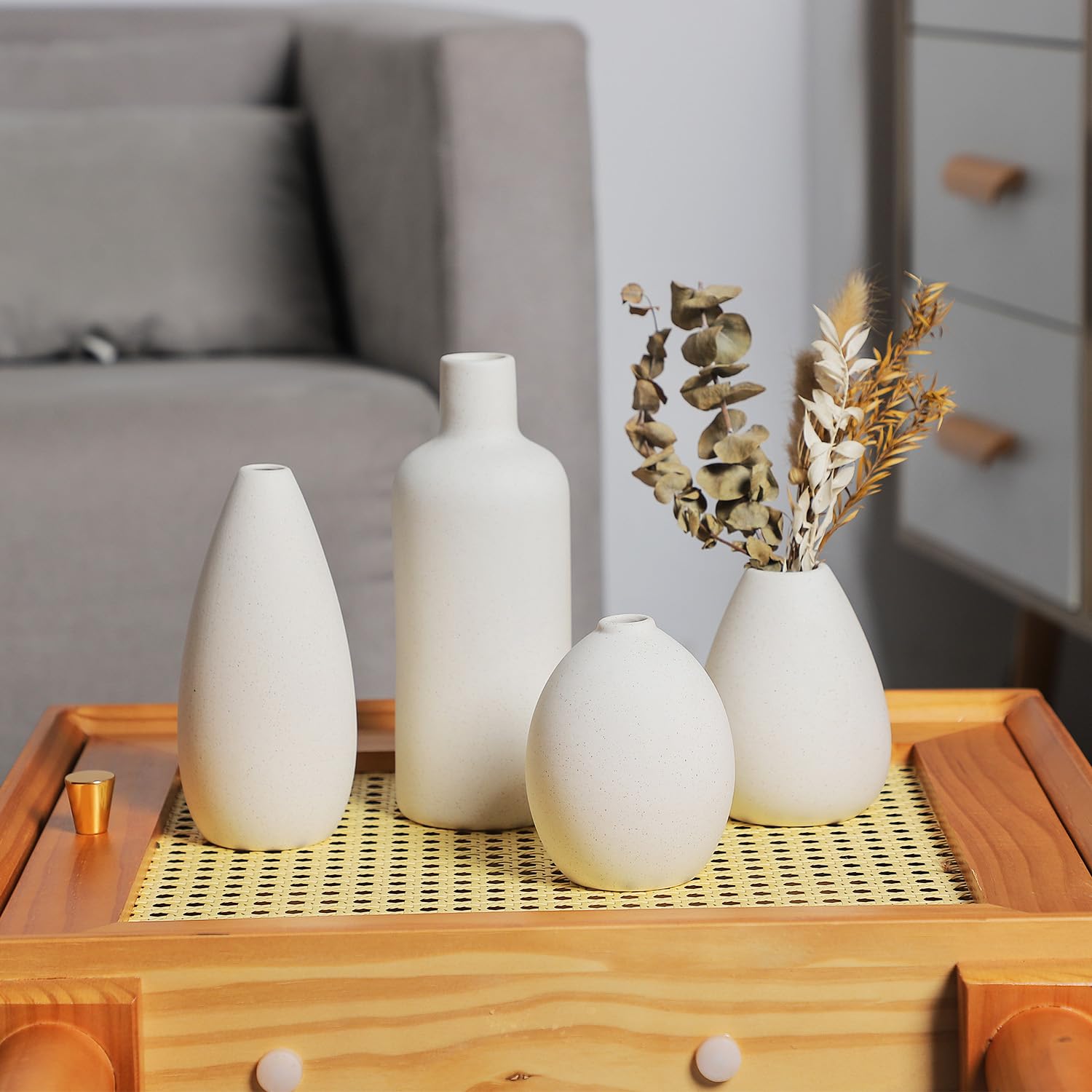 CEMABT weisse Keramik Vase Set-4 Kleine Vasen für Blumen, einzigartige Blumenvasen für Mittelstücke, dekorative Moderne Vasen für Home Decor Tisch Eingang (Weiss)
