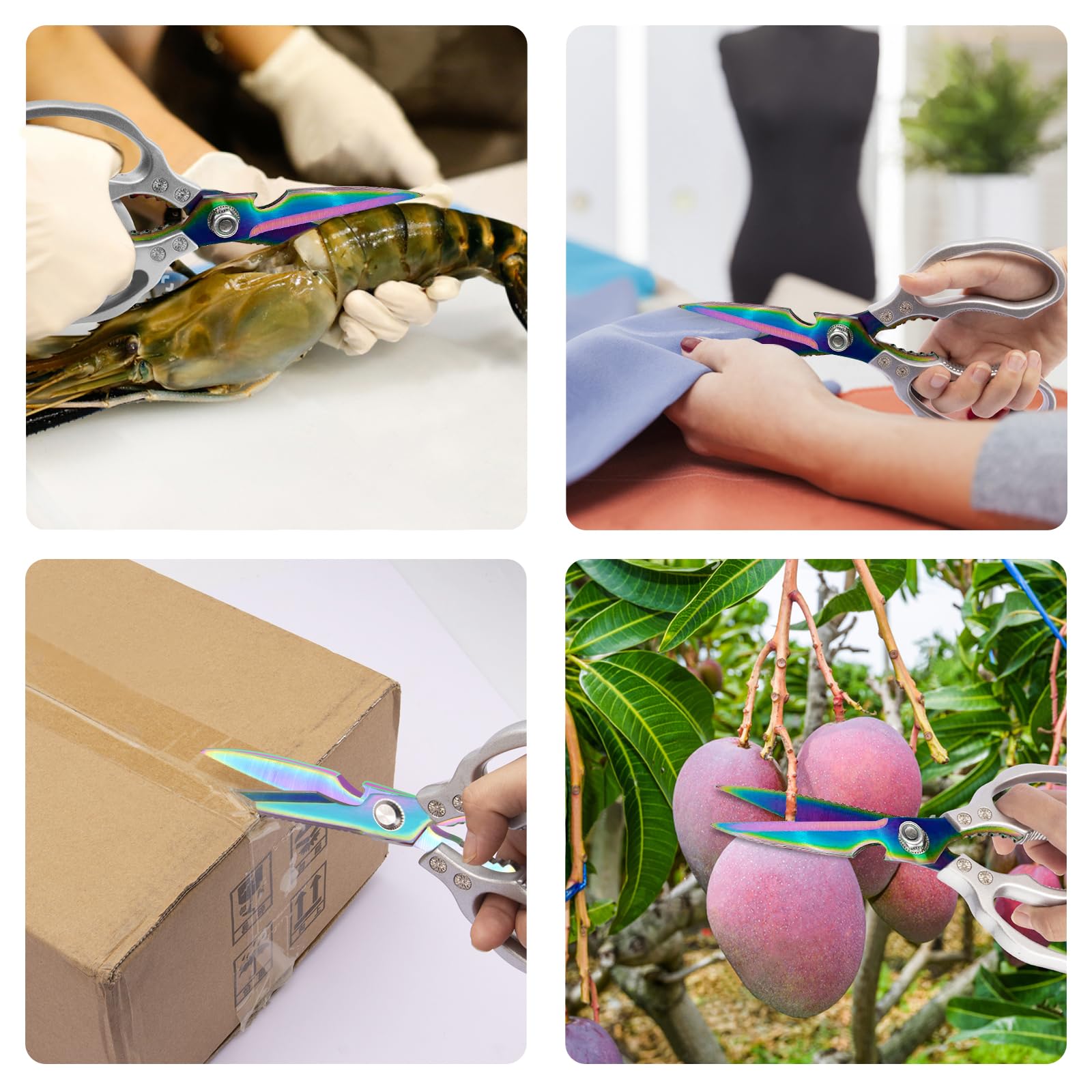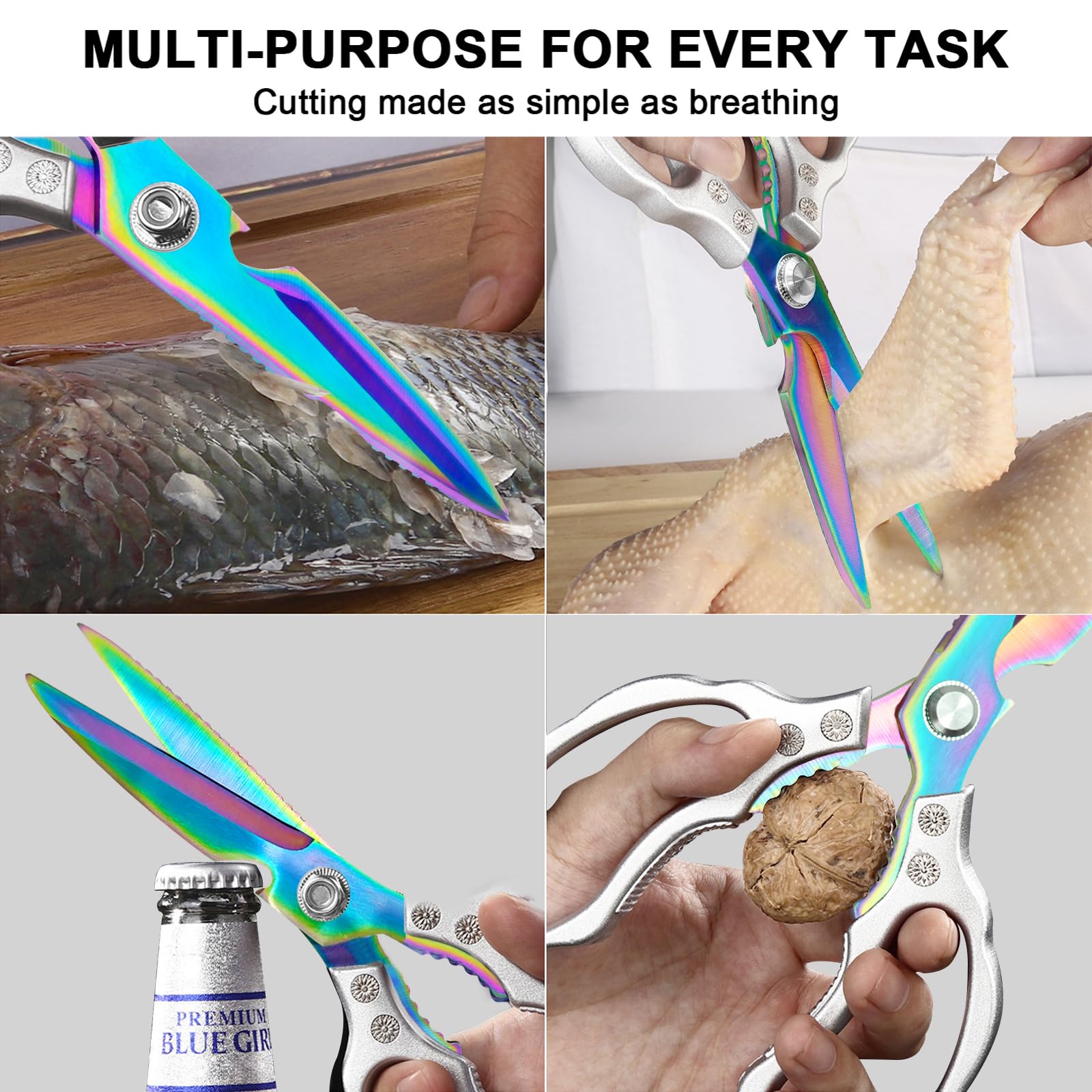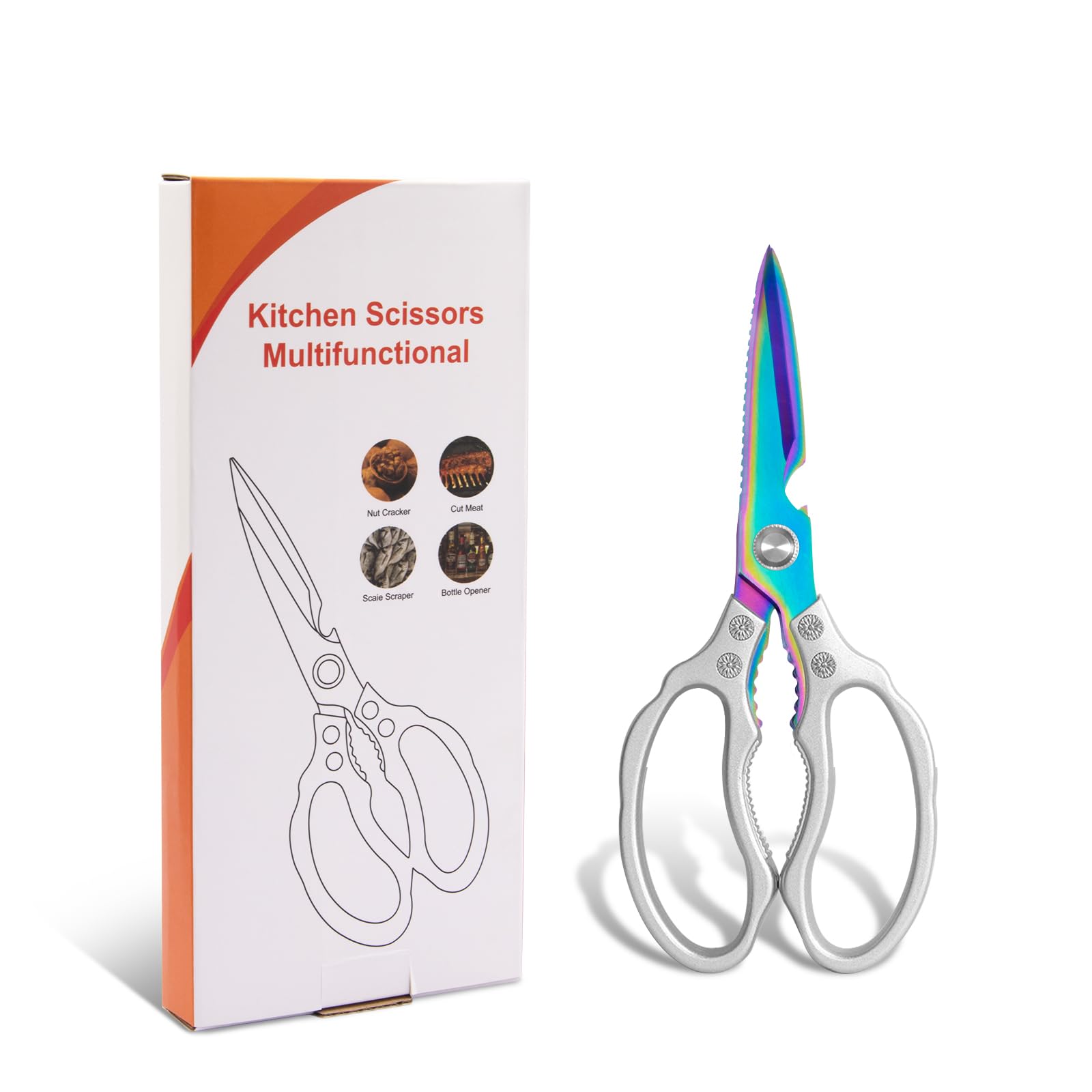 CGBE Multifunktionale Küchenschere aus Edelstahl: Scharfe Haushaltsschere Spülmaschinenfest für Küche - Allzweckschere für Huhn Geflügel Fisch Fleisch Kräuter - Mehrfarbig