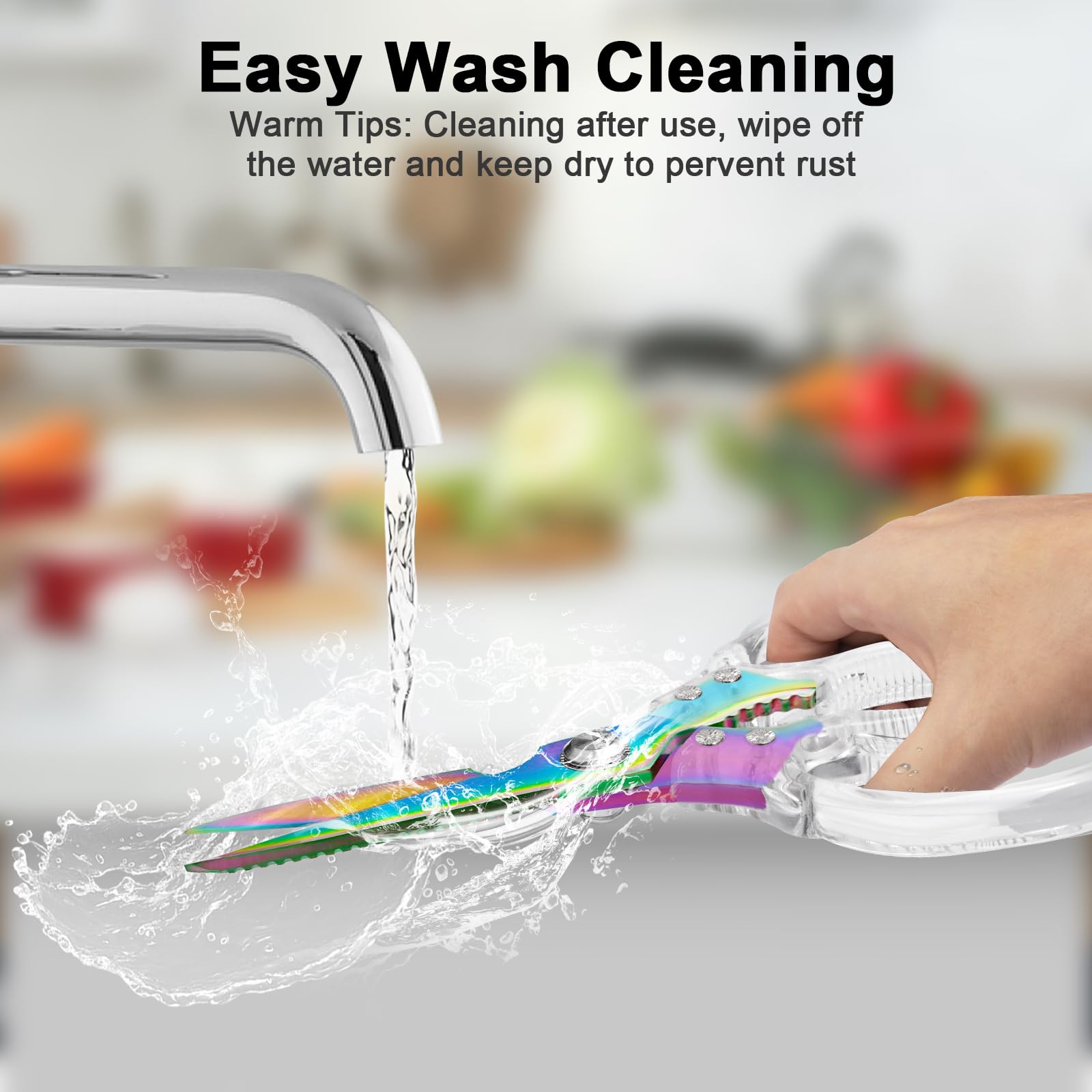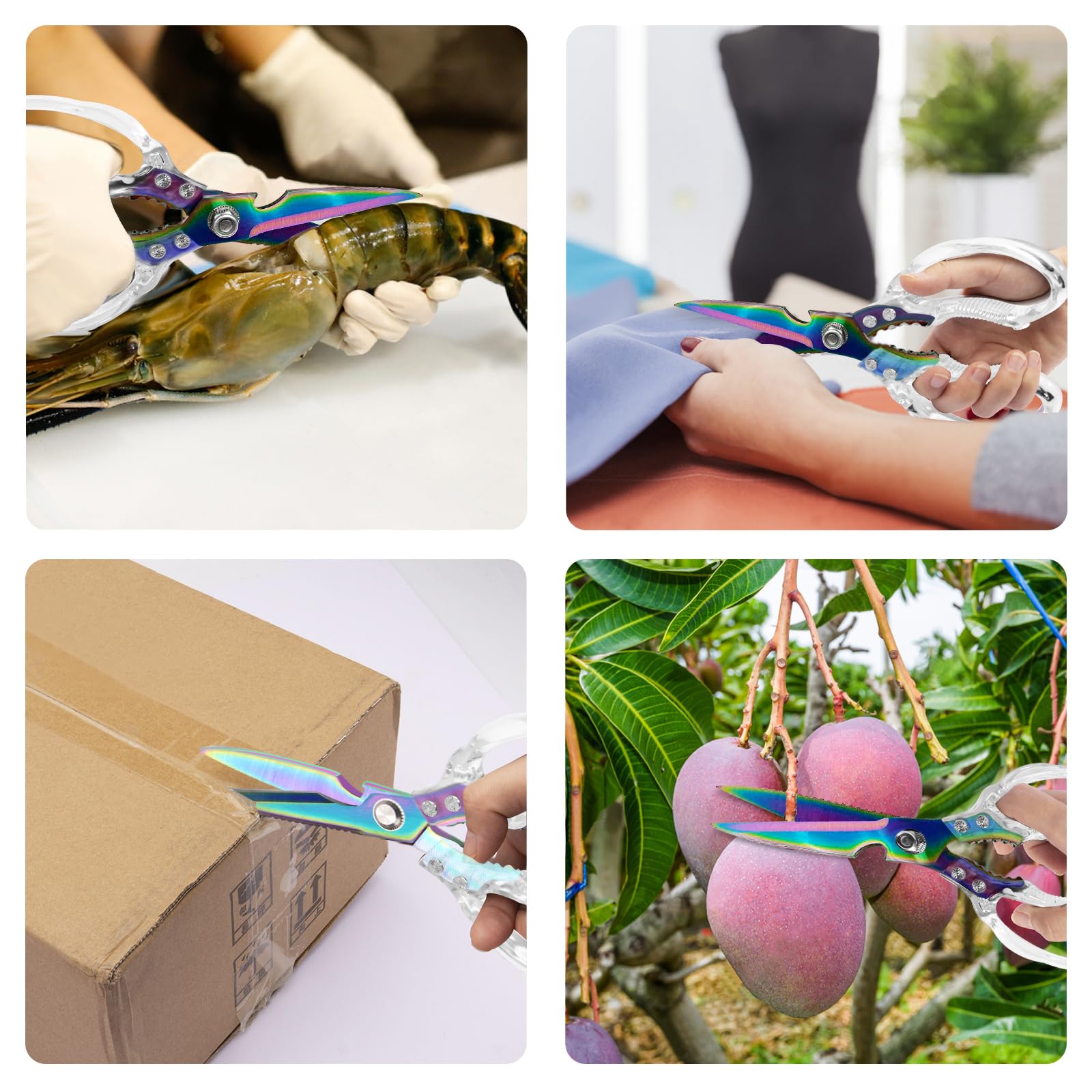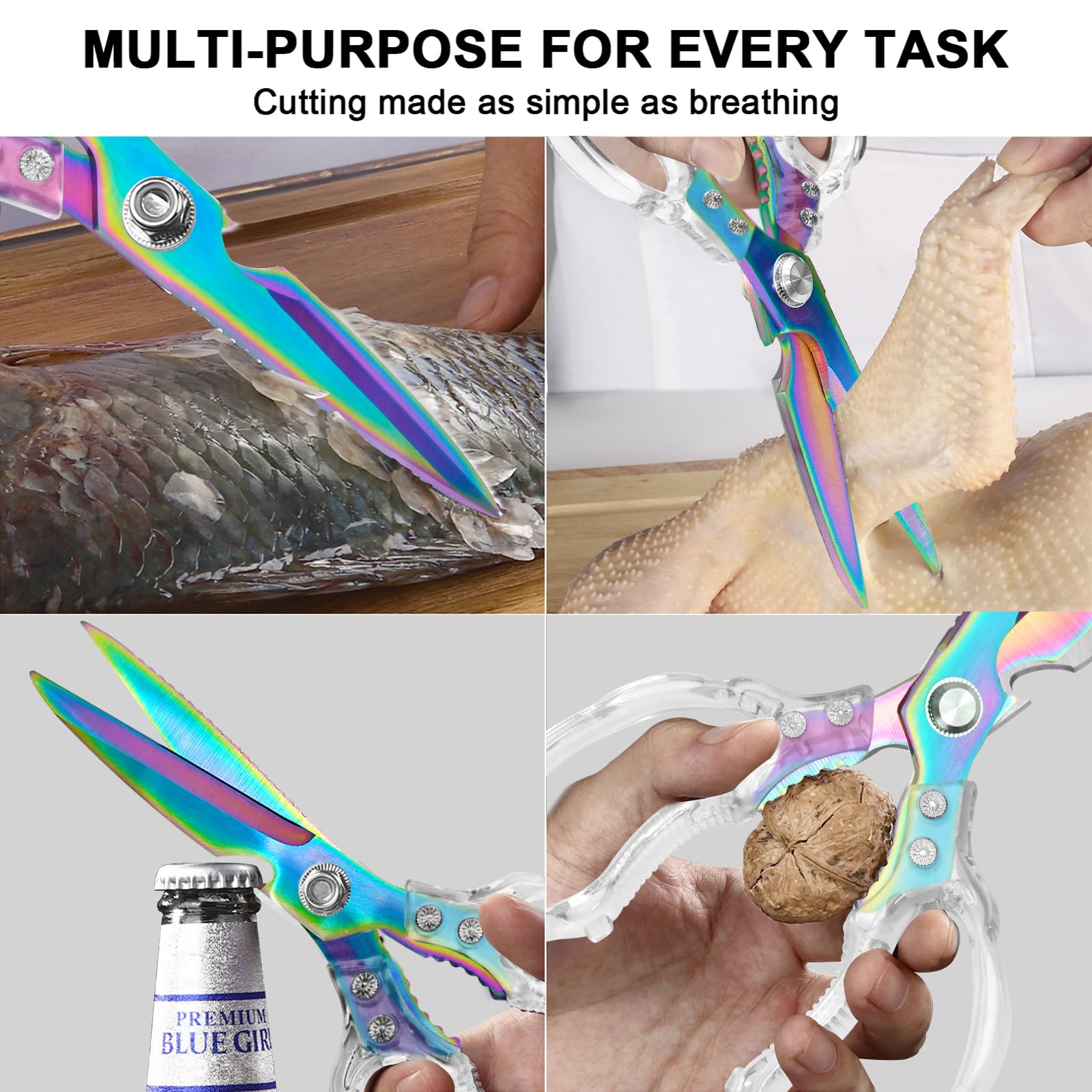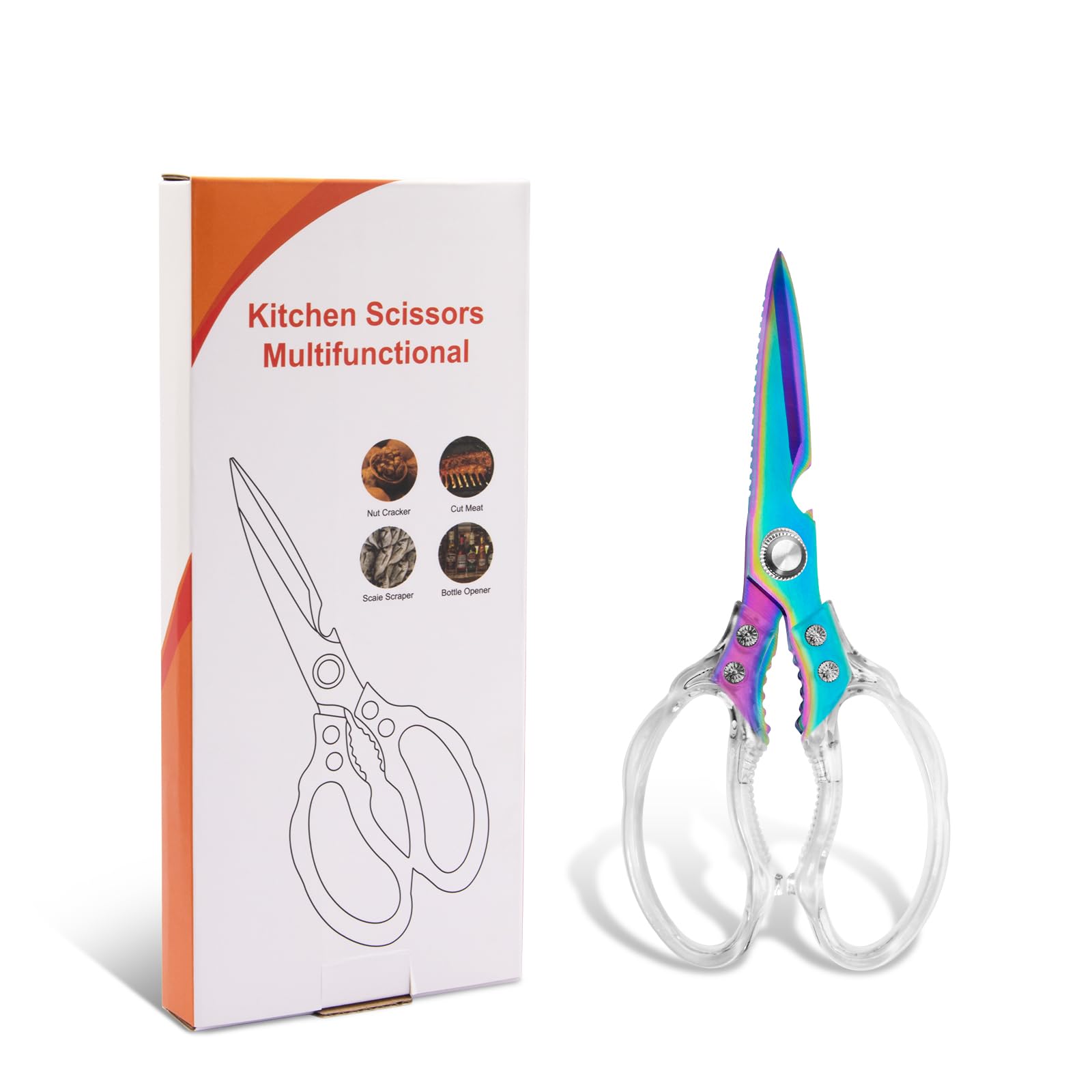 CGBE Multifunktionale Küchenschere aus Edelstahl: Scharfe Haushaltsschere für Küche - Transparenter Griff - Allzweckschere für Huhn Geflügel Fisch Fleisch Kräuter - Mehrfarbig