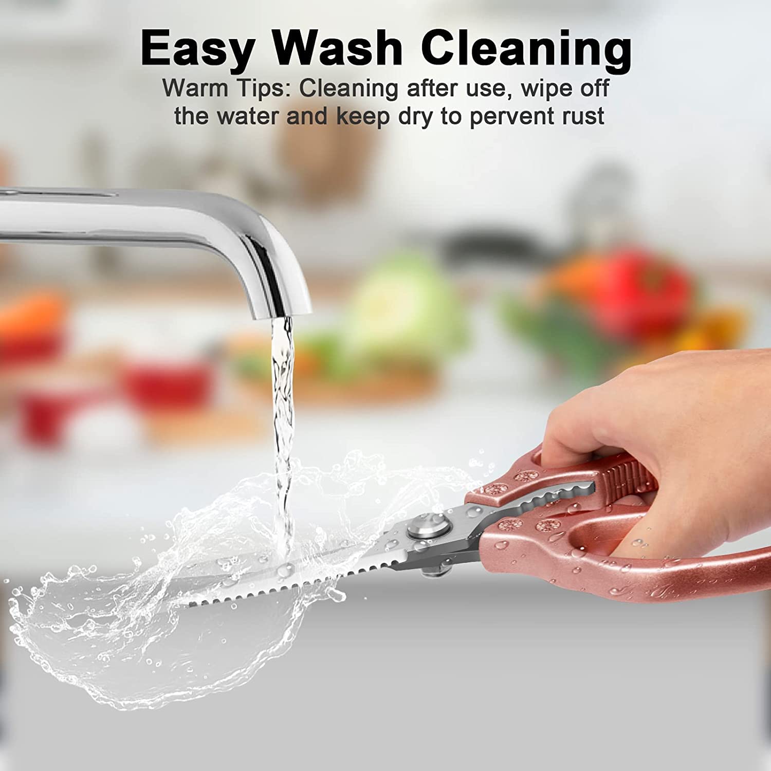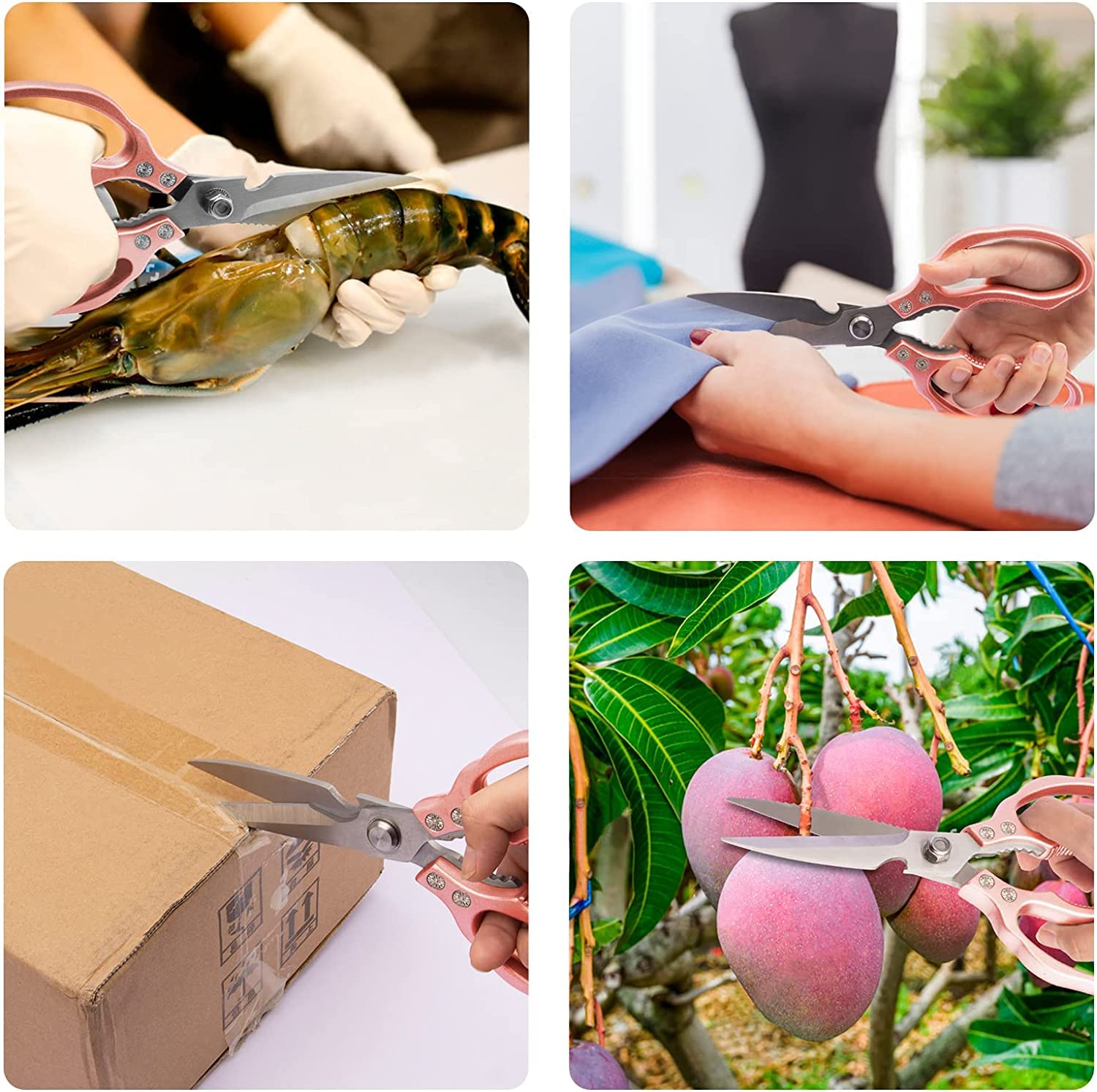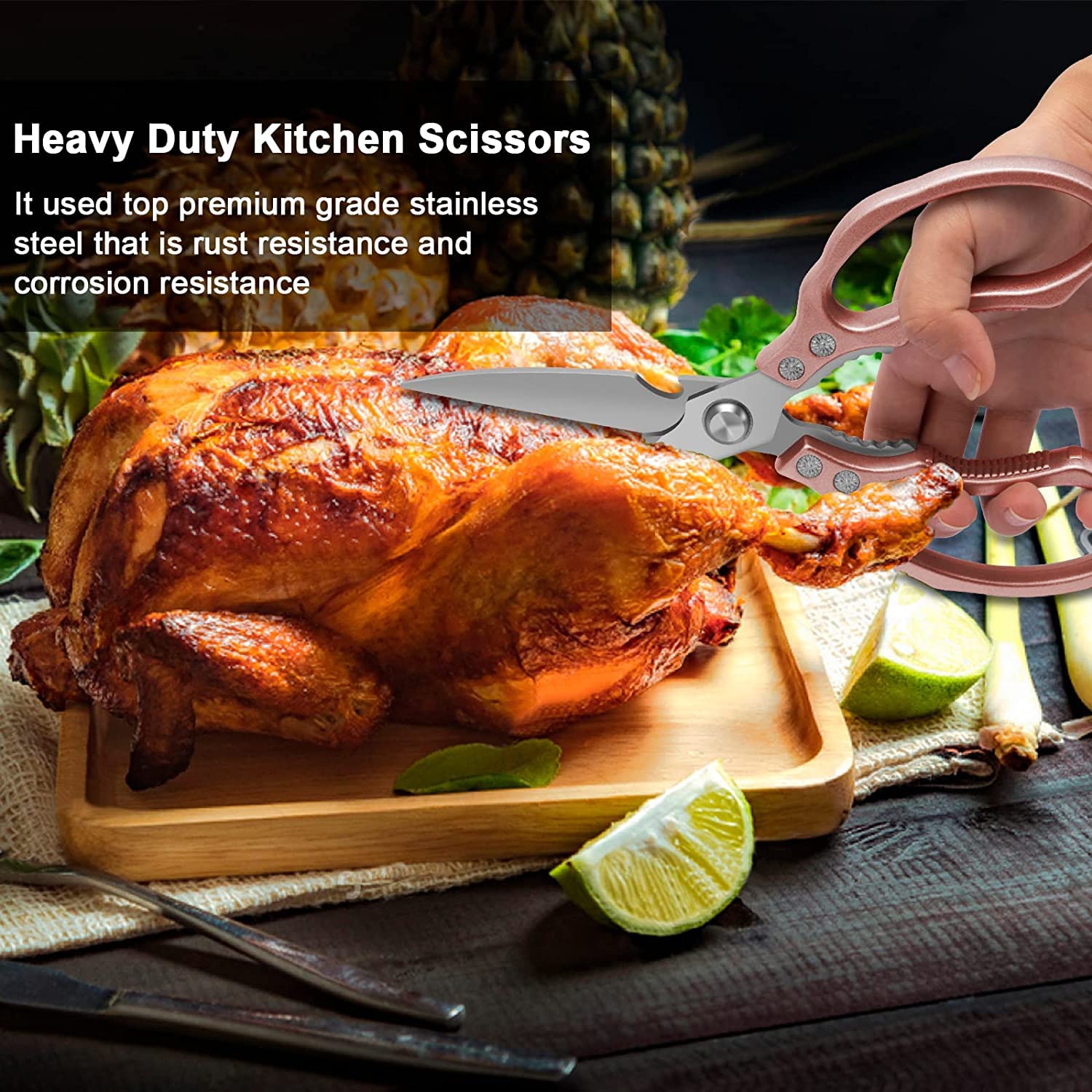 CGBE Küchenschere, Haushaltsschere aus Edelstahl, Strapazierfähig, Spülmaschinenfest, Allzweckschere, Scharfe Kochschere für Küche, Huhn, Geflügel, Fisch, Fleisch, Kräuter, Rosa Gold