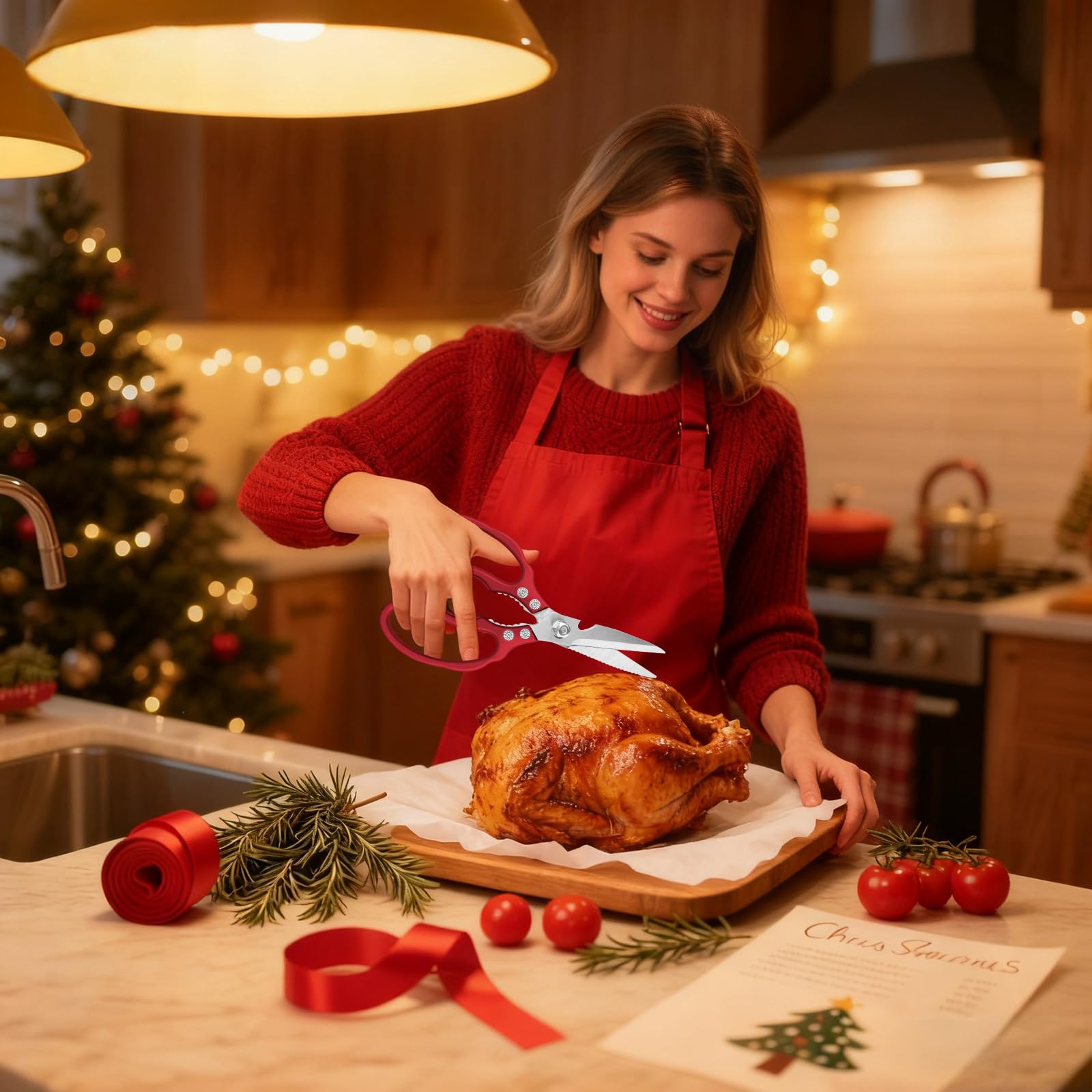 - 【GRÖSSERER ANTI-GRIP-GRIFF 】Der ergonomisch gestaltete Griff ist für Komfort geformt, grössere Griffe sind besser mit Geflügelscheren, diese komfortable und super scharfe Haushaltsschere wird die Lebensmittelzubereitung einfacher und schneller machen.
