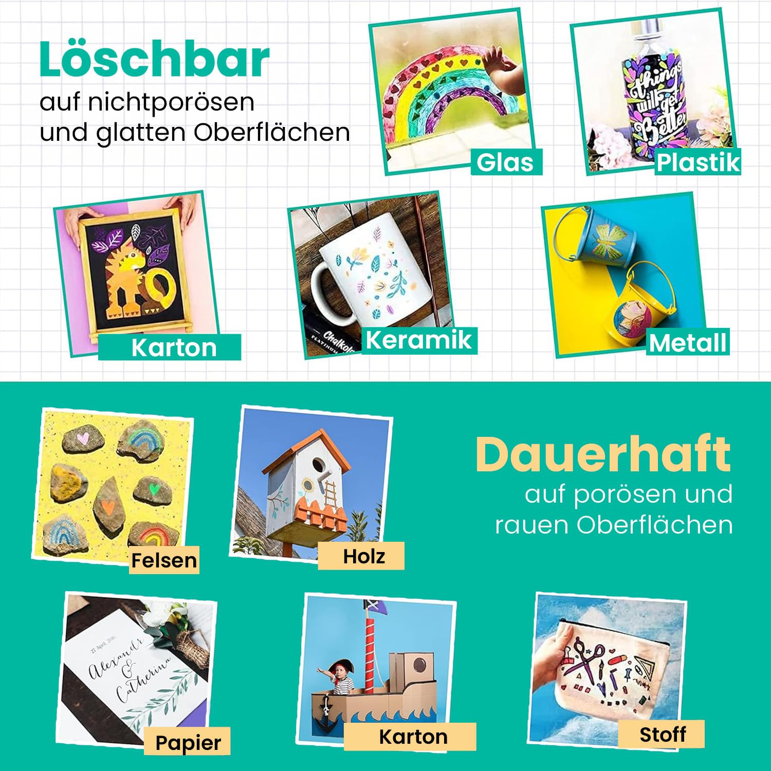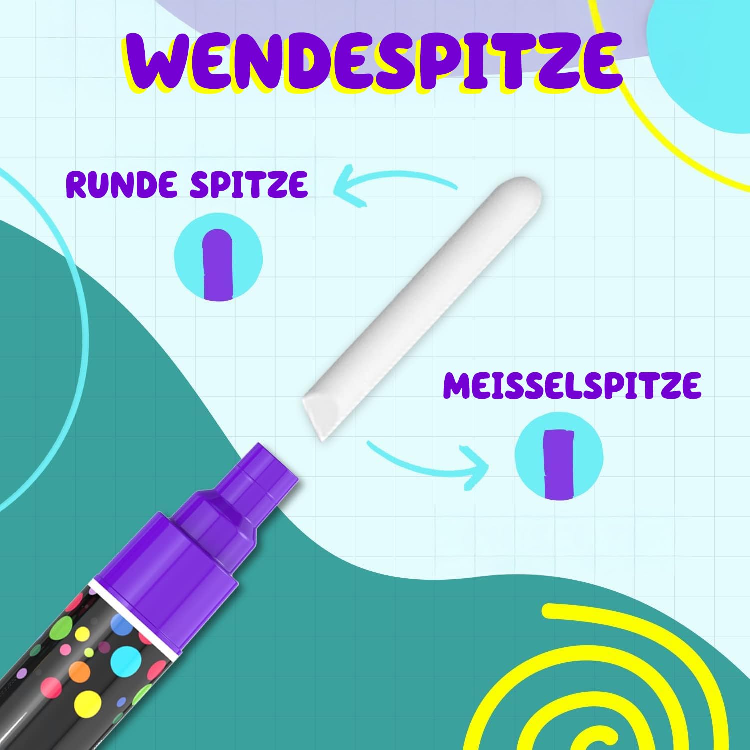 Chalkola 10 Kreidestifte für Tafel Abwaschbar - (10 Stifte, 6mm Kreidestift) Kreidestifte für Fenster, Tafelkreide & Glasstifte, Chalk Marker, Kreidemarker Abwischbar, Fensterfarben Kinder