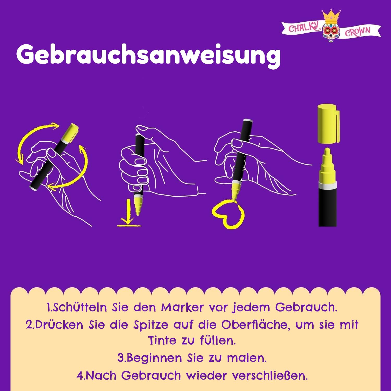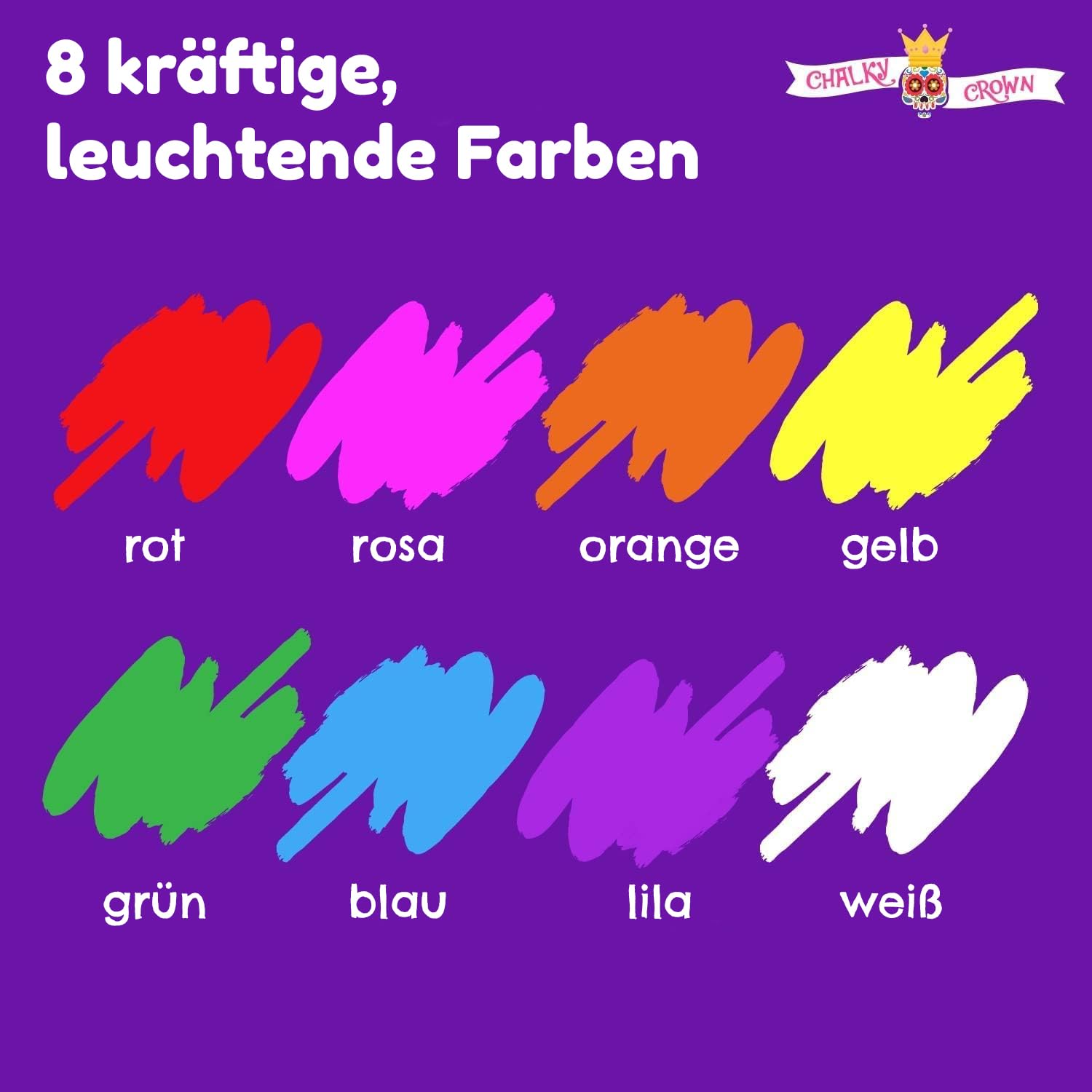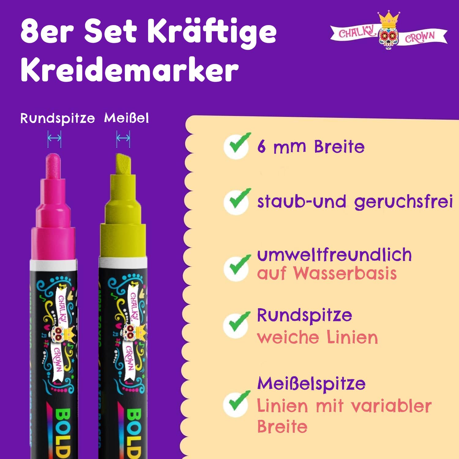 Chalky Crown - Kreidestifte für Tafel Abwaschbar - Für Tafeln, Schilder, Fenster, Glas - Umkehrbare Spitze (8er-Pack) - Mehrfarbig, 6 mm