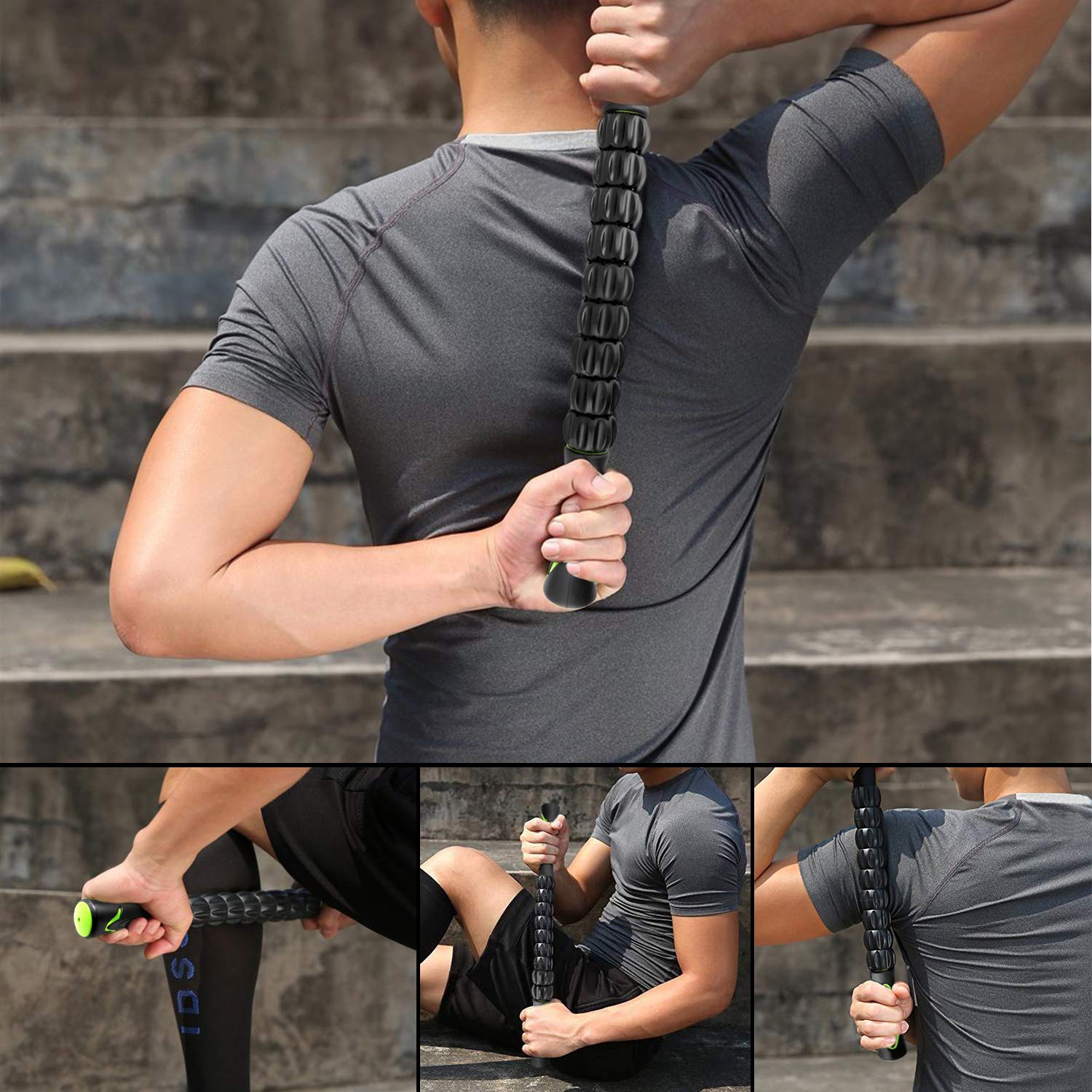 CHAOCHI Muskel-Massageroller Stick – Triggerpunkt- und Faszienmassage, 8 Rollen, Dual-Griff, ultramobil