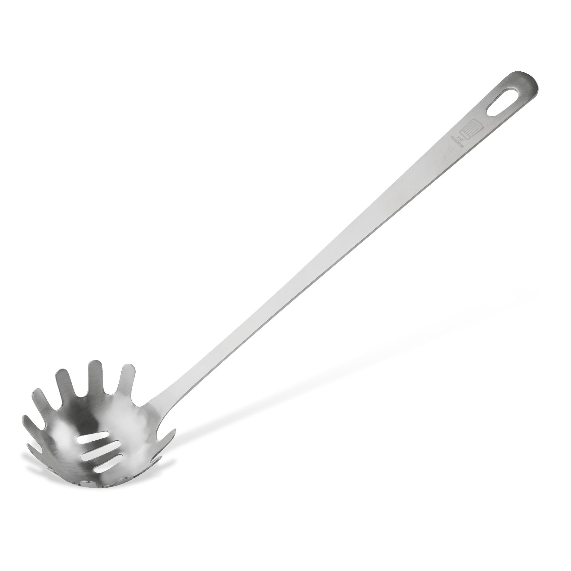 Seine robuste Edelstahlkonstruktion macht den Spaghettilöffel besonders langlebig und widerstandsfähig. Zudem ist er spülmaschinengeeignet, was die Reinigung nach dem Kochen erleichtert.