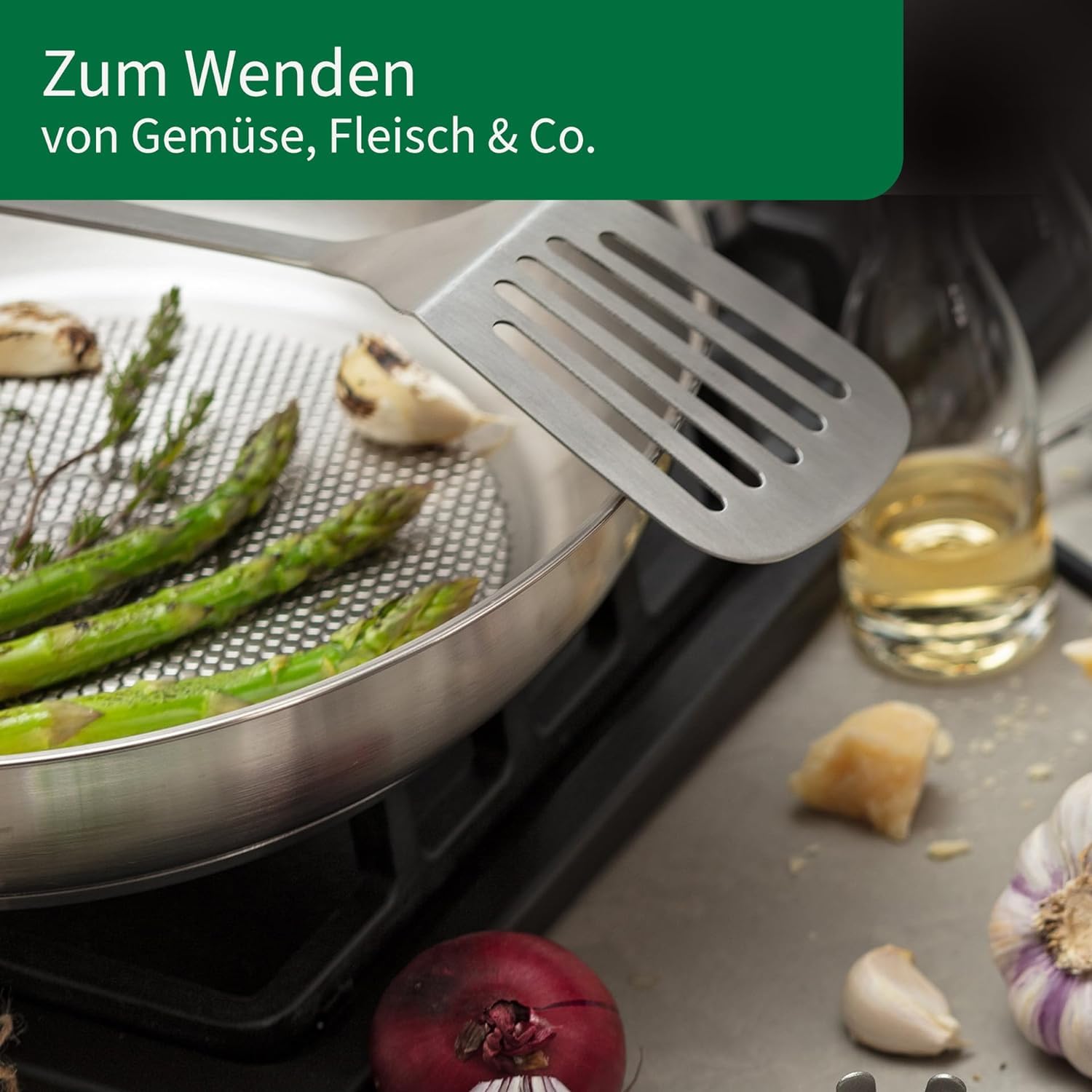 Der Schlitzwender ist perfekt zum Wenden von Gemüse, Fleisch und vielen weiteren Speisen. Er sorgt für ein unkompliziertes und angenehmes Kocherlebnis, ob auf dem Grill oder dem Herd.