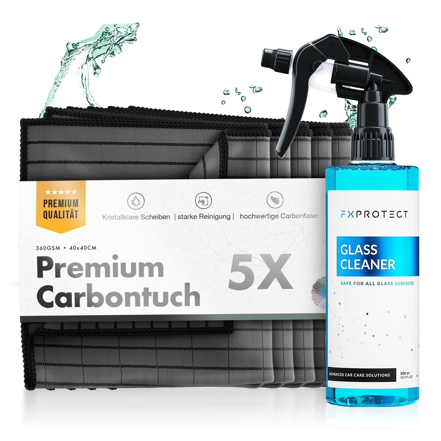 Chemicalworkz® Scheiben Bundle - Premium Carbontücher (5er Set) + Glasreiniger Auto - Für kristallklare Autoscheiben ohne Streifen & Schlieren - Carbon Mikrofasertücher Auto Glastuch Glas Reiniger
