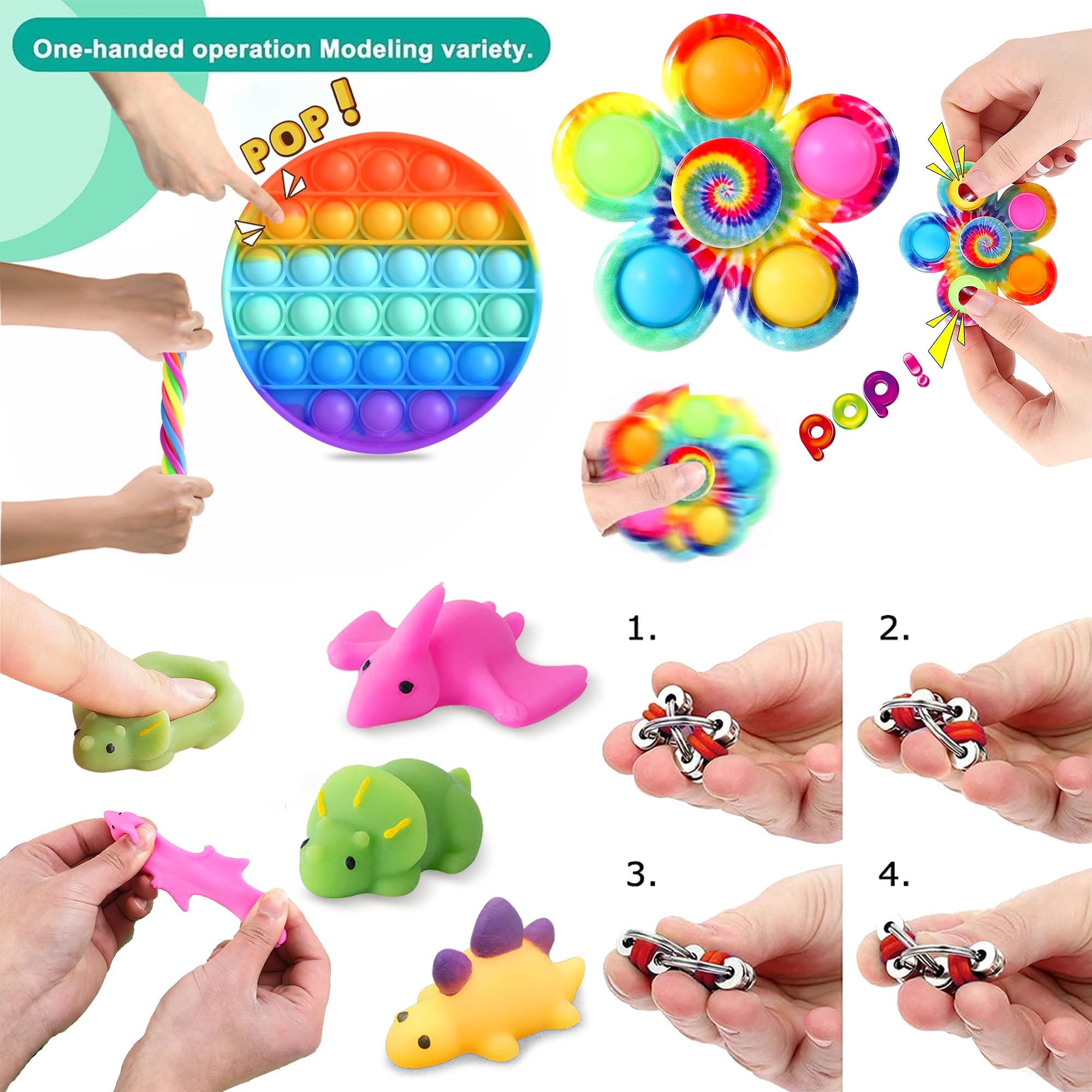 Chennyfun Stressabbau-Set, 30 Pcs Sensory Zappeln Anti-Stress Spielzeug - Infinity Cube Sensorisches Set, Fidget Toys Für Kinder Mit Angstlust, Autismus Und ADHS