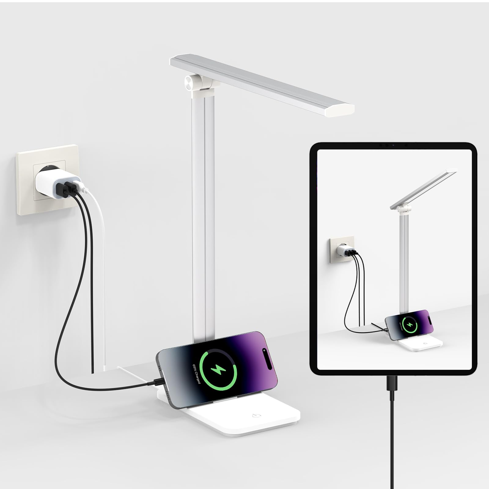 Die Chesbung Schreibtischlampe hat einen integrierten USB-Anschluss,der sich komplett