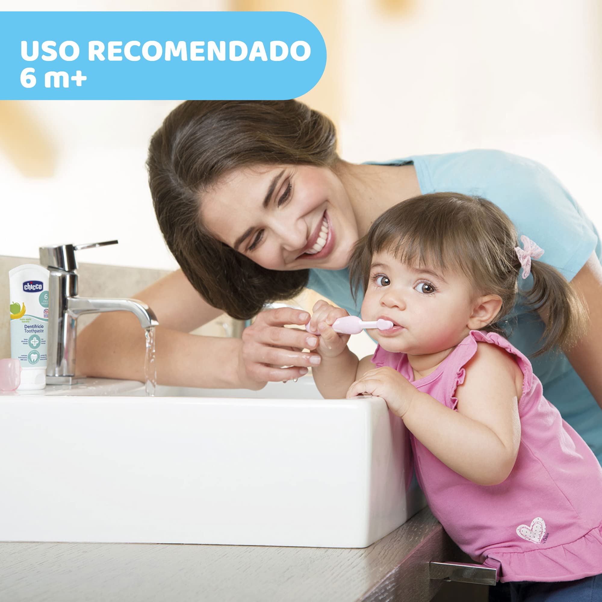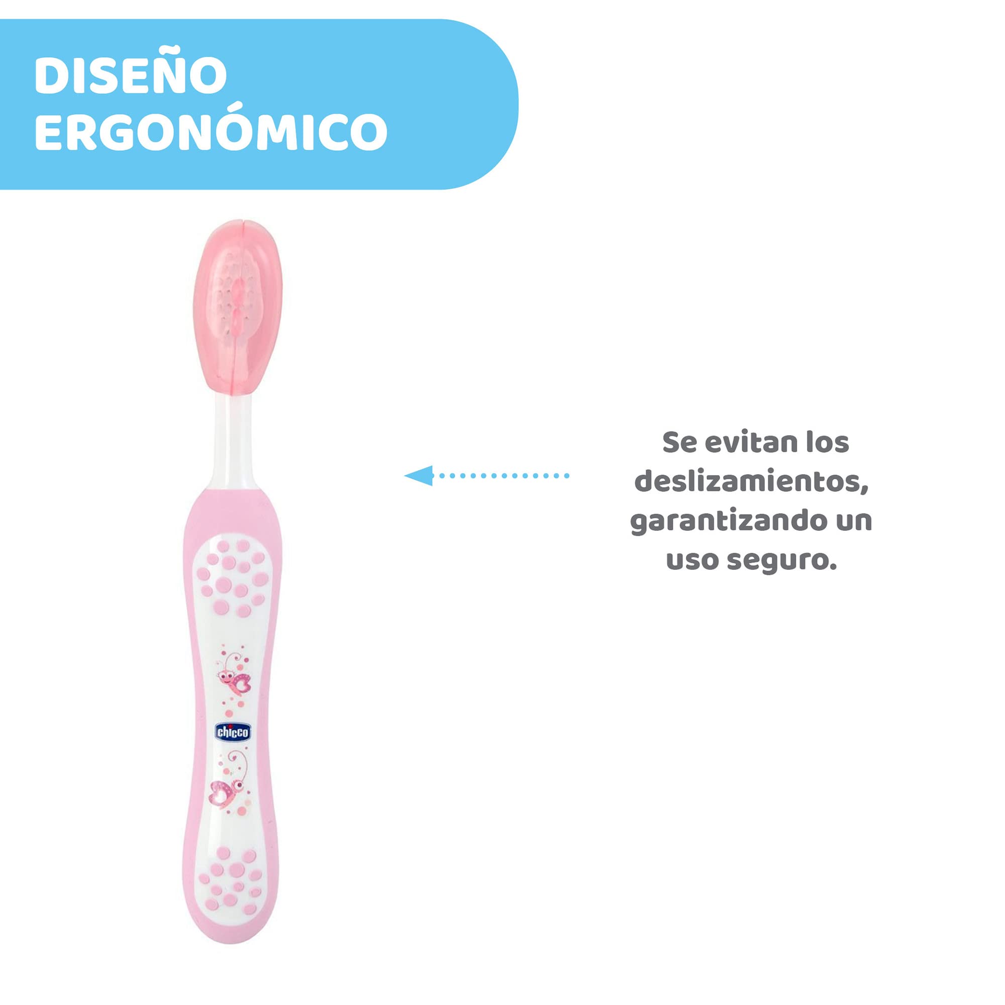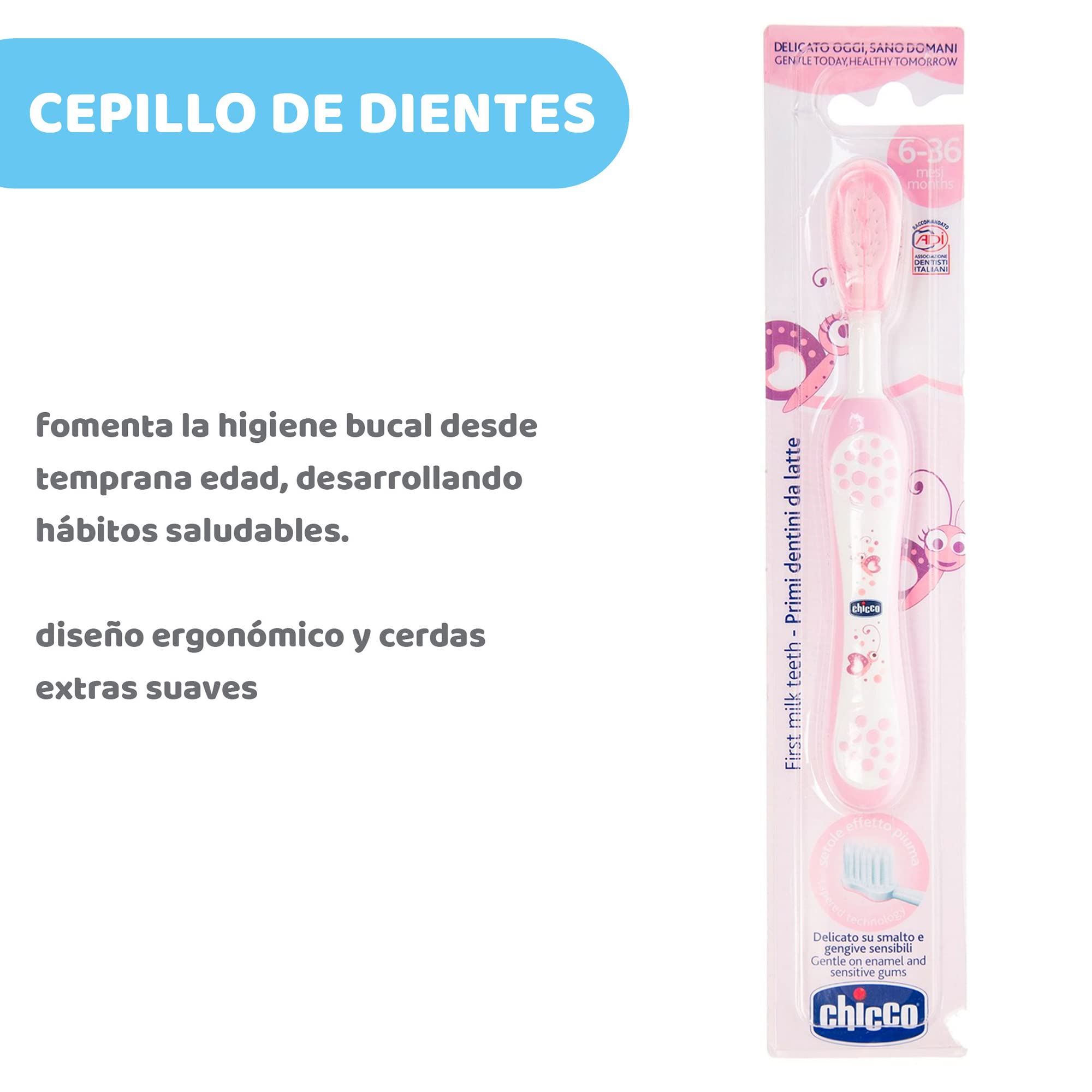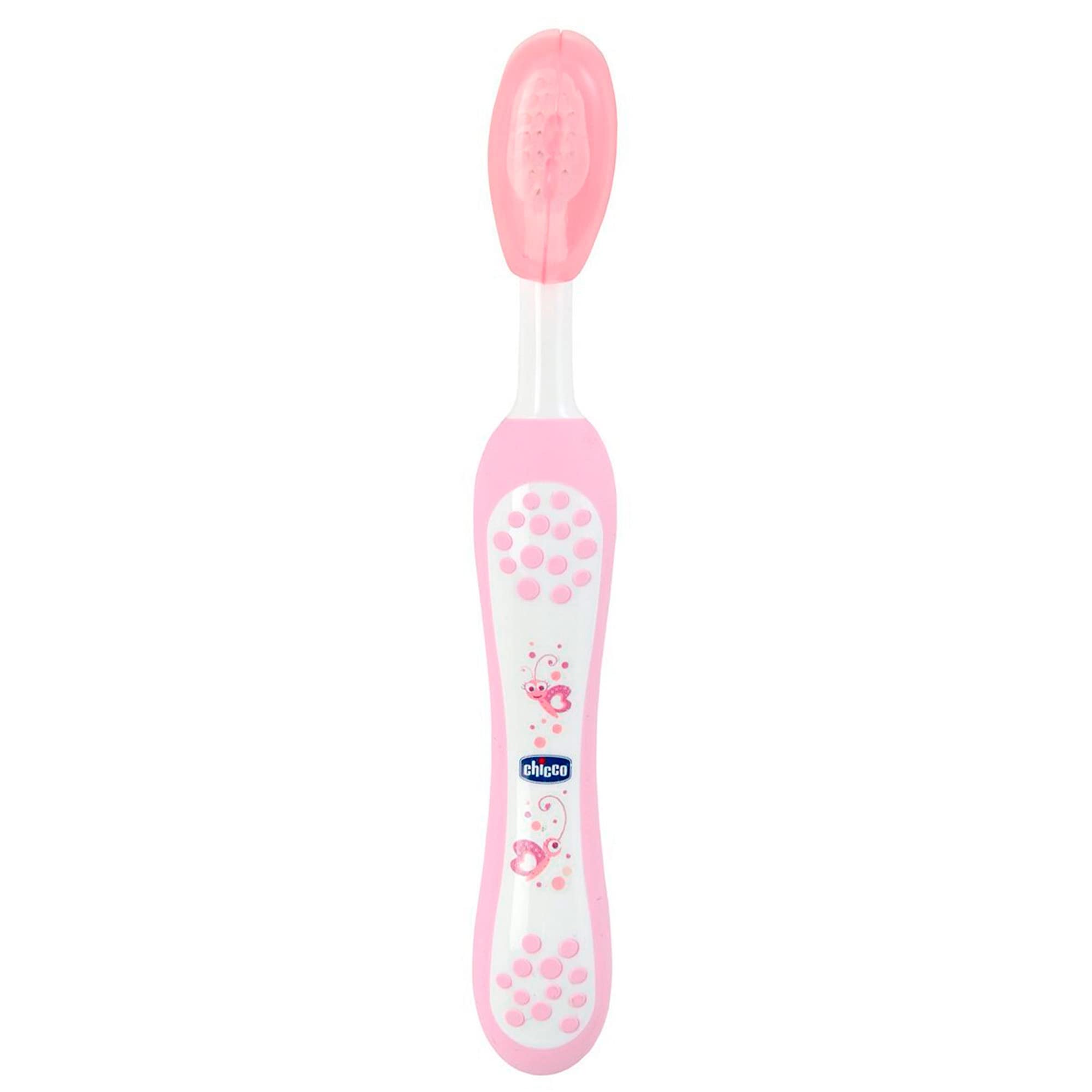 Chicco Kinder Zahnbürste mit geformtem und abgerundetem Kopf, Baby Zahnbürste mit superweichen Borsten, sanft zu Zahnfleisch und Zähnen, inkl. Schutzhülle, Geschenk für Neugeborene 6-36 Monate, Pink, 1 Stück (1er Pack)