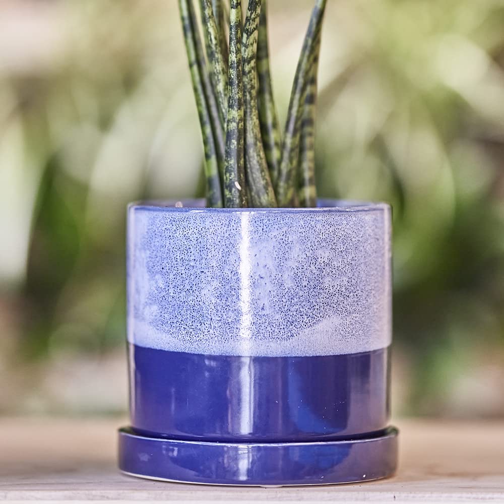 Chive Minute Keramik-Übertopf, niedlich, 5 Bunte Sukkulentententöpfe für Innen- und Aussenbereich, Zimmerpflanzen, schöne Moderne Bauernhaus-Küchendekoration, Kobaltblau
