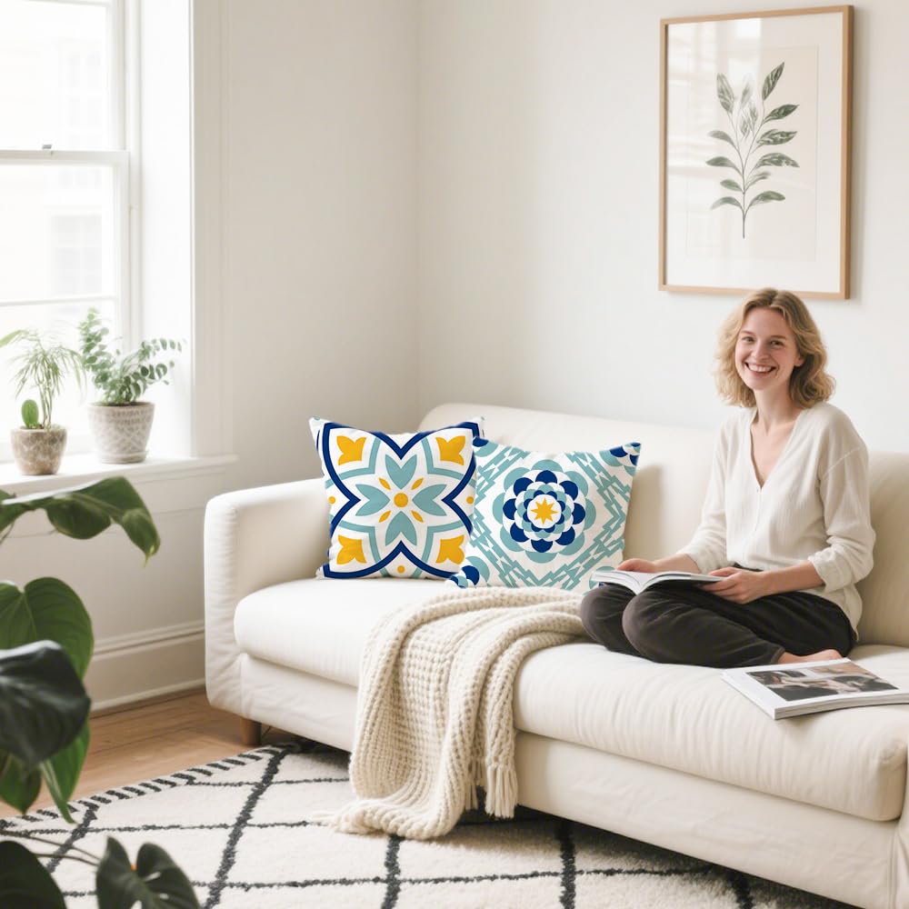 Cirzone Kissenbezug 45x45 4er Set Outdoor Kissen Wetterfest Leinen, Boho Deko für Deko Wohnzimmer, Garten, Balkon